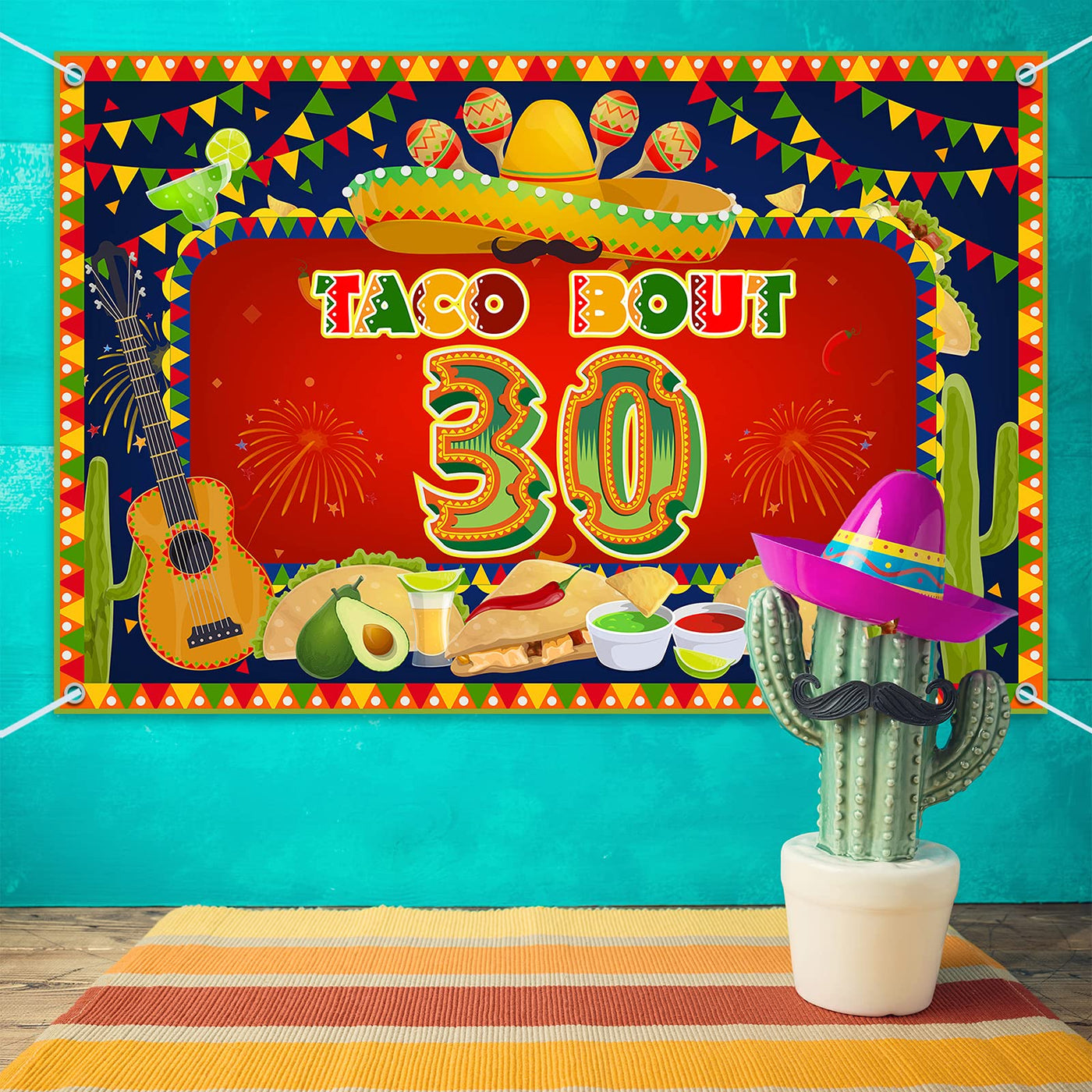 Hamigar 6X4Ft Happy 30Th Birthday Banner Backdrop - Taco Bout 30 Fiesta Mexican Cactus Birthday Decorations Party Supplies For M