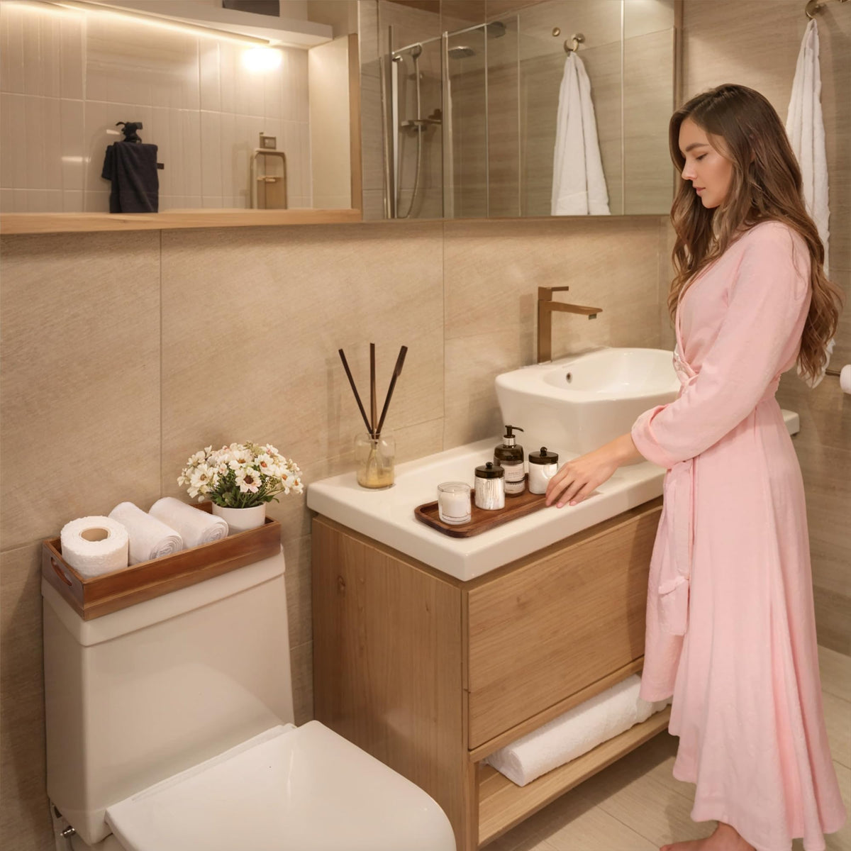 • Q: Is the product suitable for outdoor use? A: The product is designed primarily for indoor use, such as in bathrooms or kitchens. Exposure to outdoor elements may damage the wood.