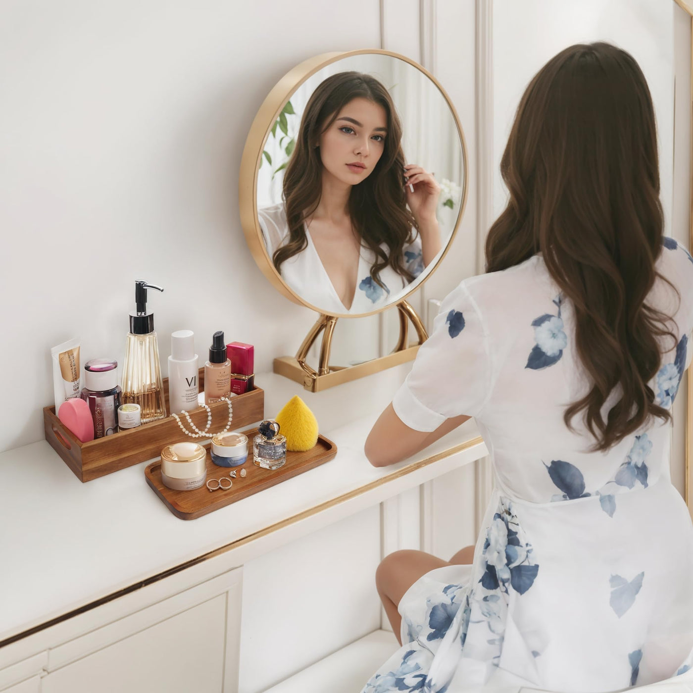 • Q: Can I use the vanity tray for serving food or drinks? A: Yes, the vanity tray can be used for serving food, drinks, or as a decorative display for items like candles or cosmetics.