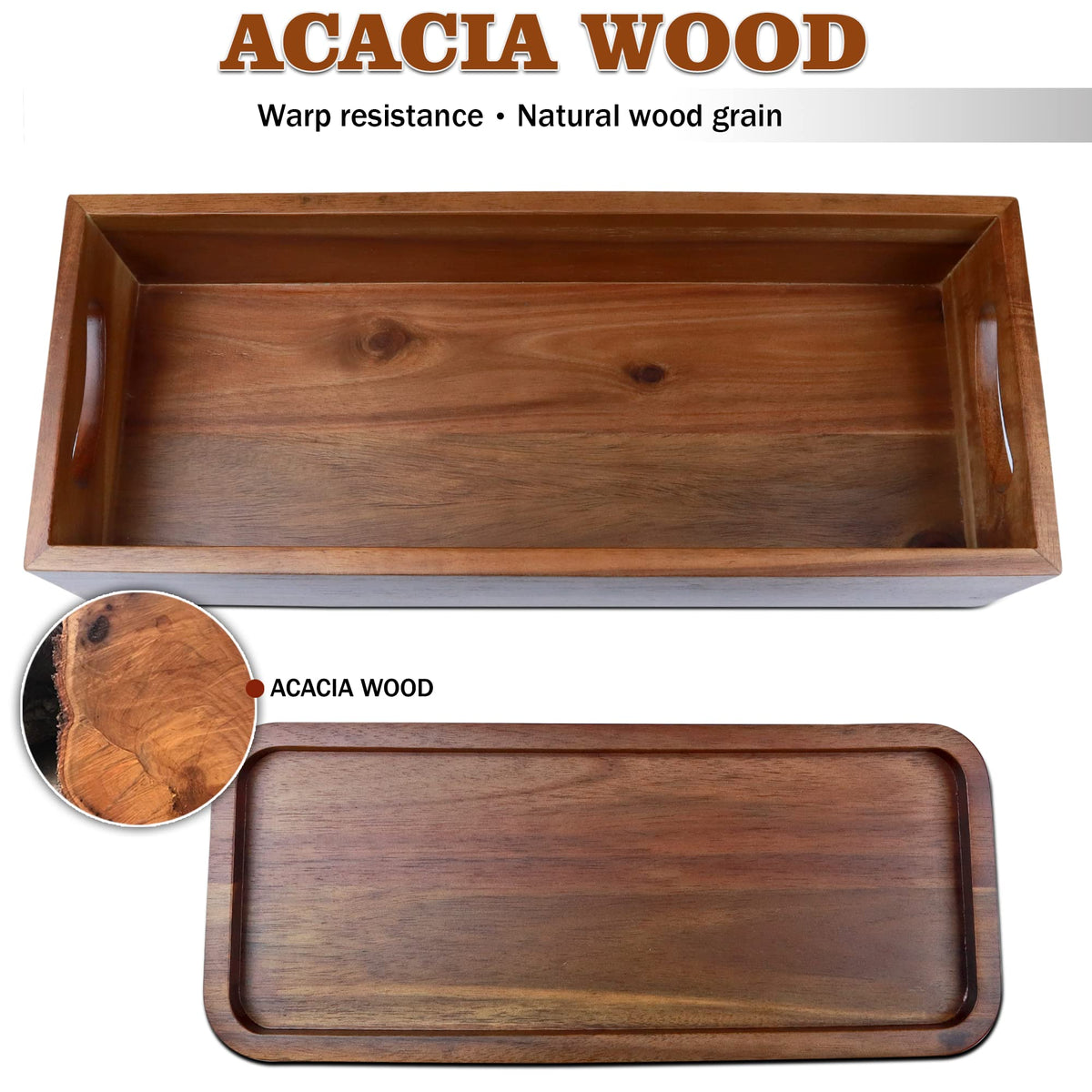 Handmade Toilet Tank Basket Topper & Vanity Tray Set Of Natural Acacia Wood By Demigo, Created By Skilled Artisans, Smooth, Dura