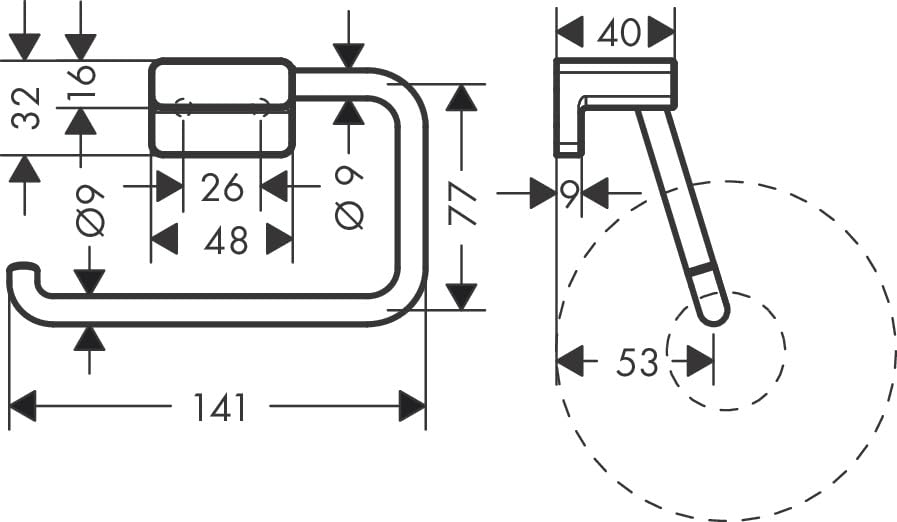 • Q: What are the dimensions of the Hansgrohe AddStoris toilet roll holder? A: The width of the Hansgrohe AddStoris toilet roll holder is 5.5 inches, making it a suitable size for standard toilet paper rolls.