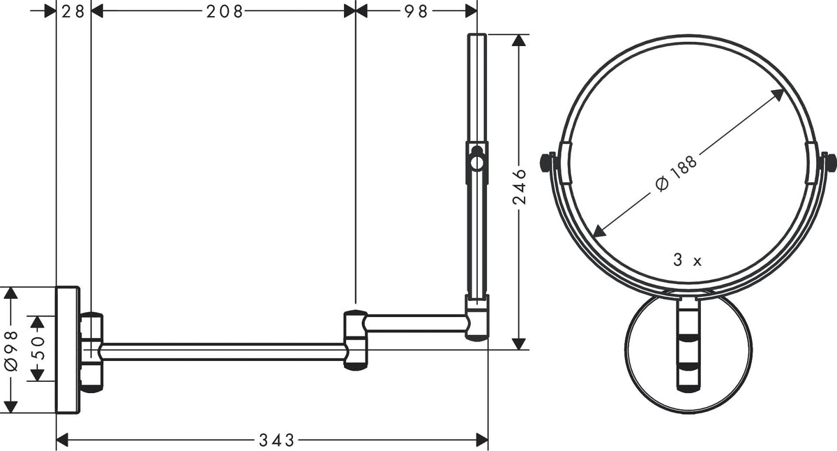 • Q: What are the dimensions of the hansgrohe Pull-Out Shaving Mirror? A: The hansgrohe Pull-Out Shaving Mirror has a diameter of 7 inches.