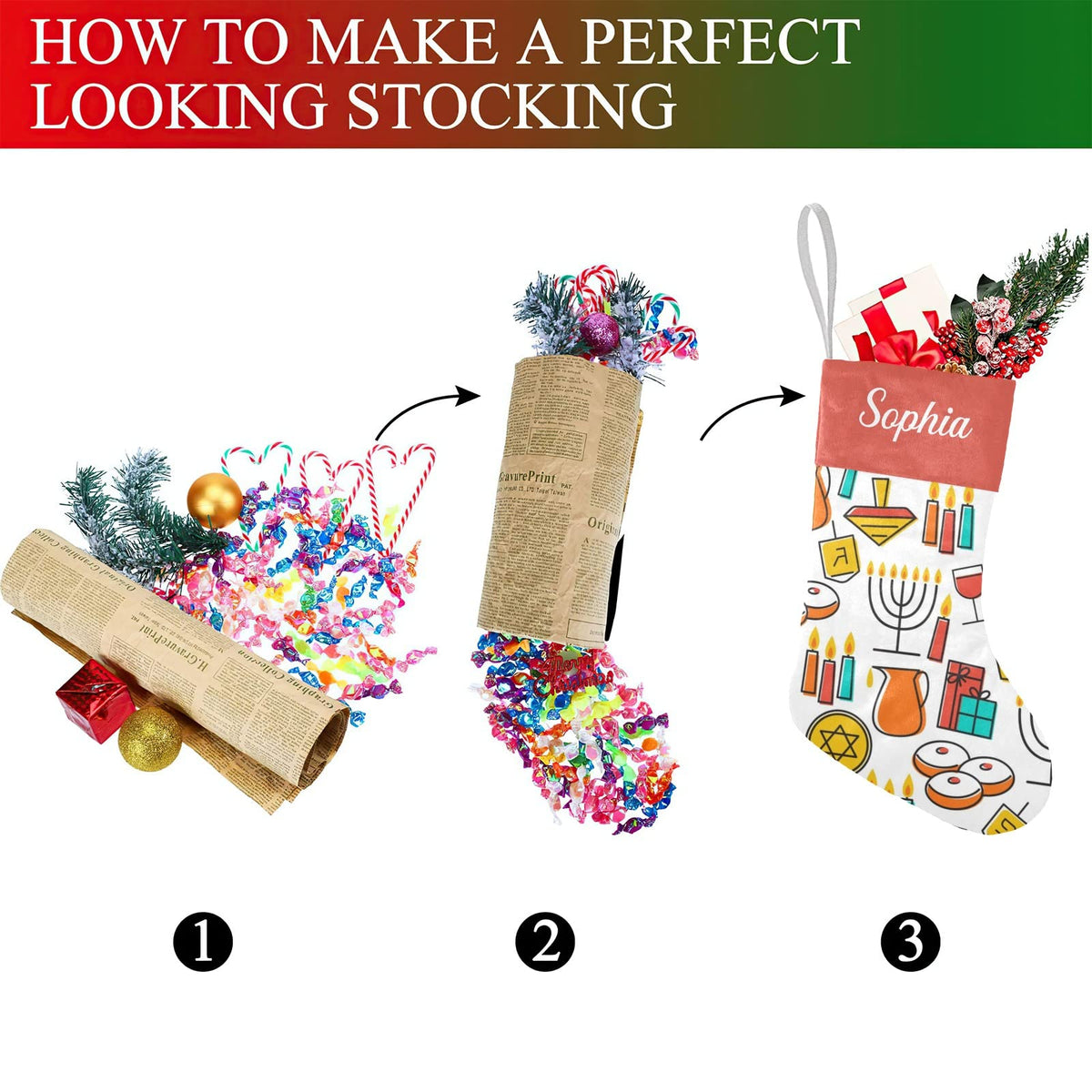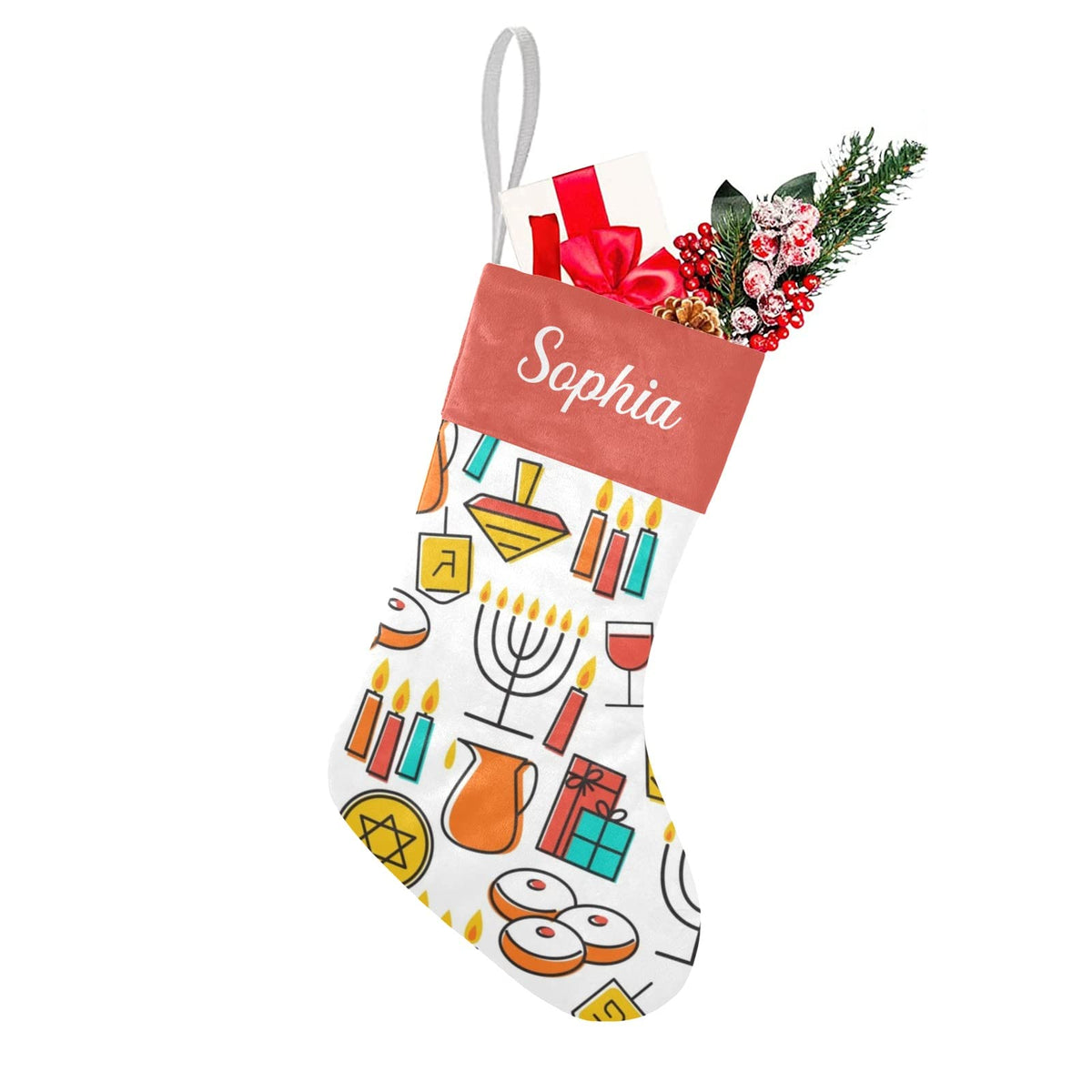 Hanukkah Seamless Pattern Christmas Stockings Custom Personalized Name Xmas Festive Gift Decor Family Party 17.52 x 7.87 Inch