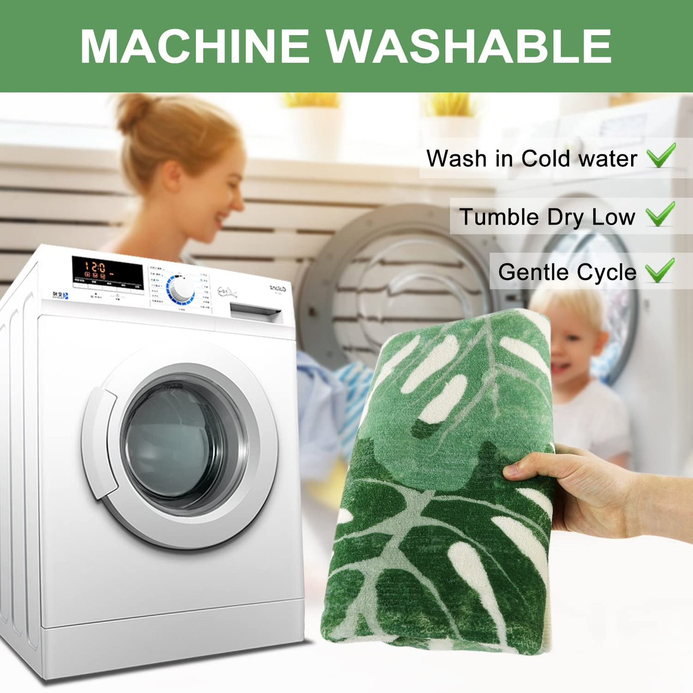 - Q: Is the design of the bath mat suitable for boho decor? A: Yes, the green leaves design of the HAOCOO Bath Mat adds a boho touch, making it an attractive addition to your bathroom decor.