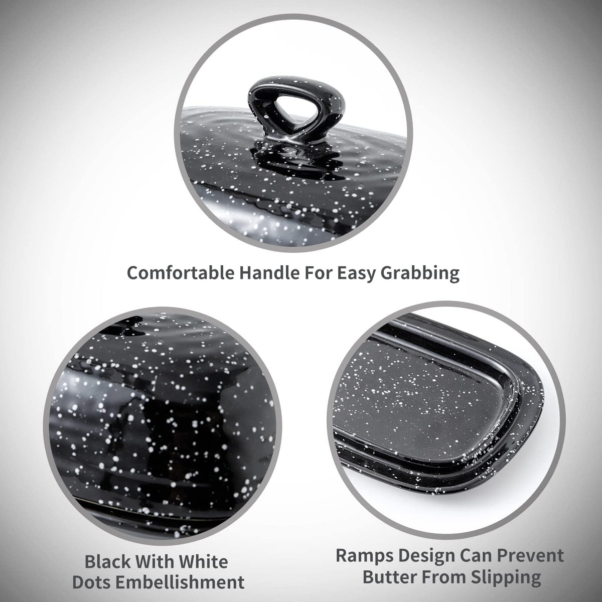 - Q: What is the design style of the Hasense Butter Dish? A: The butter dish features a stylish black color with a unique white dot design, adding elegance to any kitchen countertop.