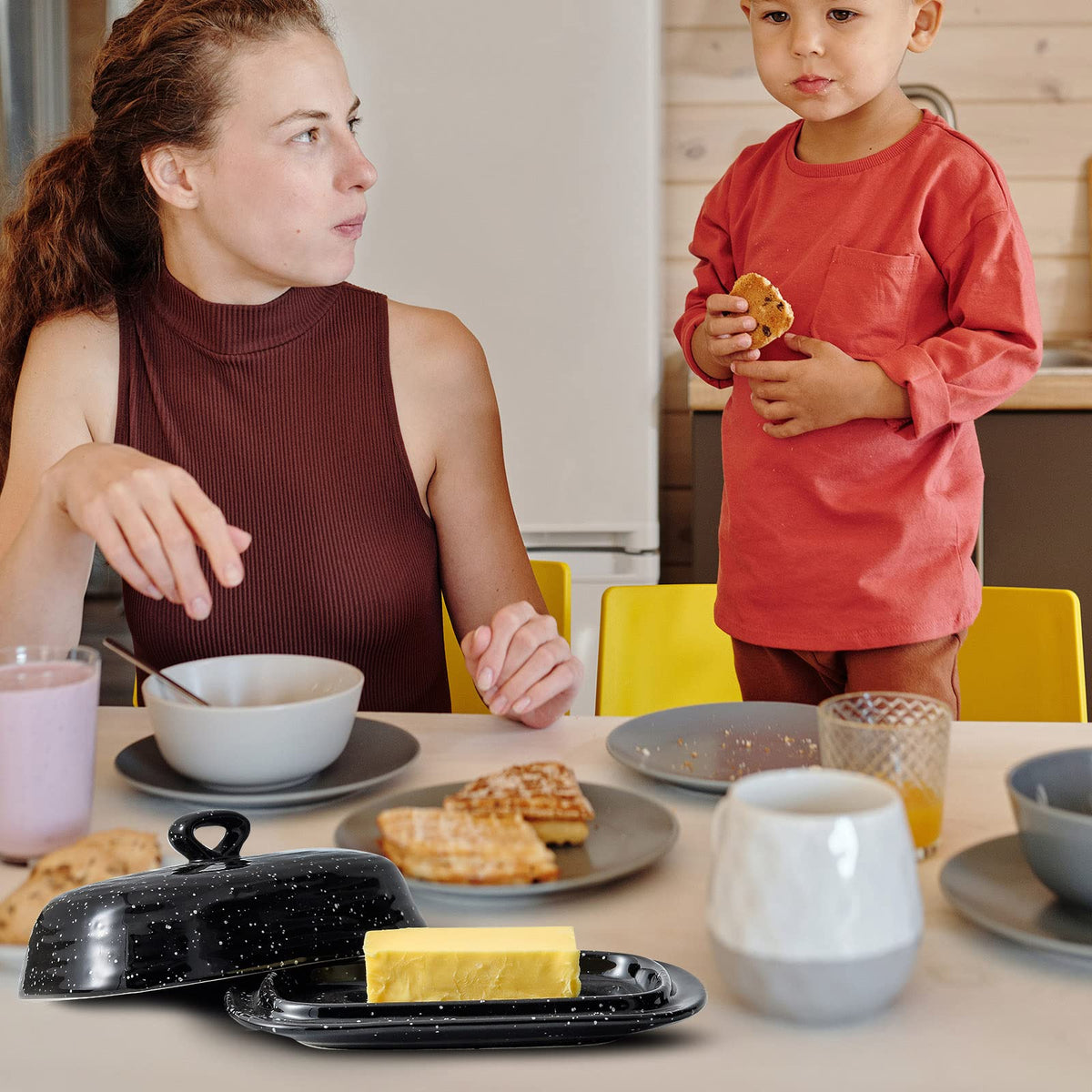- Q: What makes this butter dish unique? A: The butter dish features a unique handle design for easy opening and an inner ridge to secure the lid, preventing the butter from slipping.