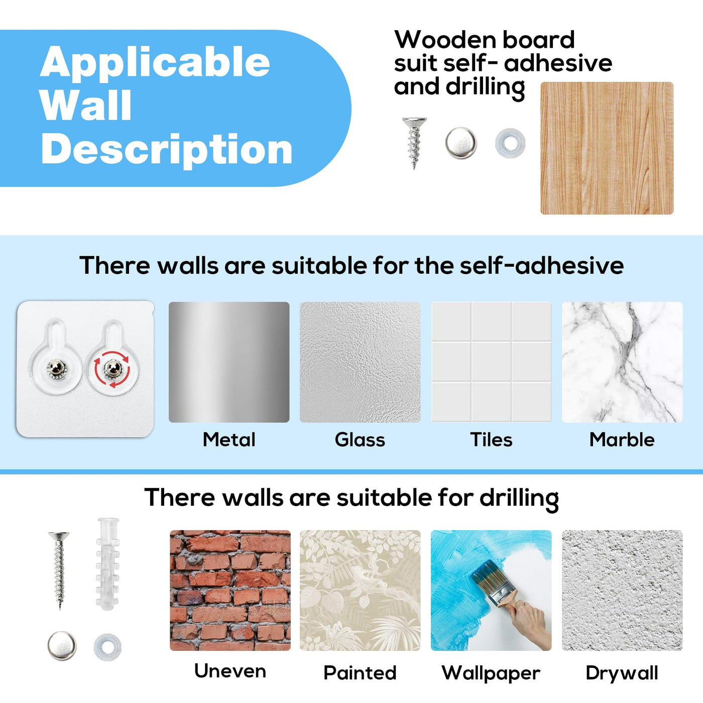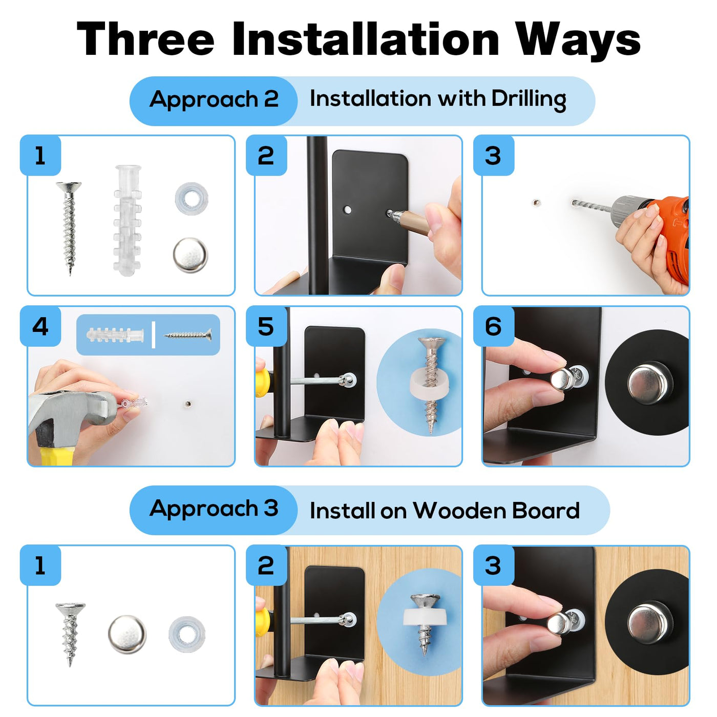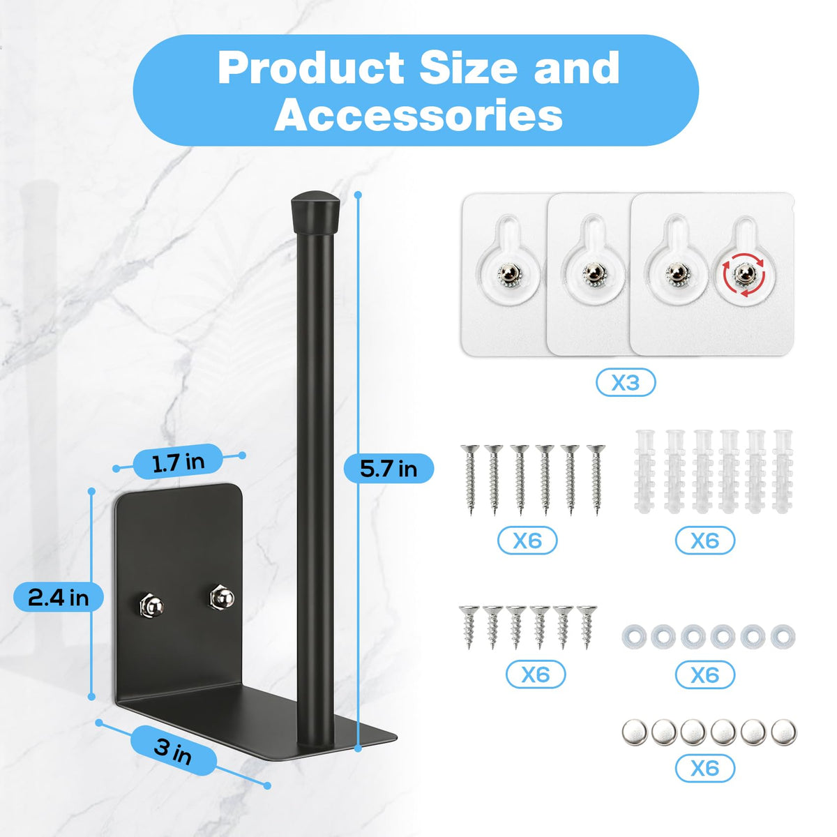 - Q: What is included in the installation kit? A: The installation kit includes a 3-pack screw installation kit and a 3-pack self-adhesive for easy setup.
