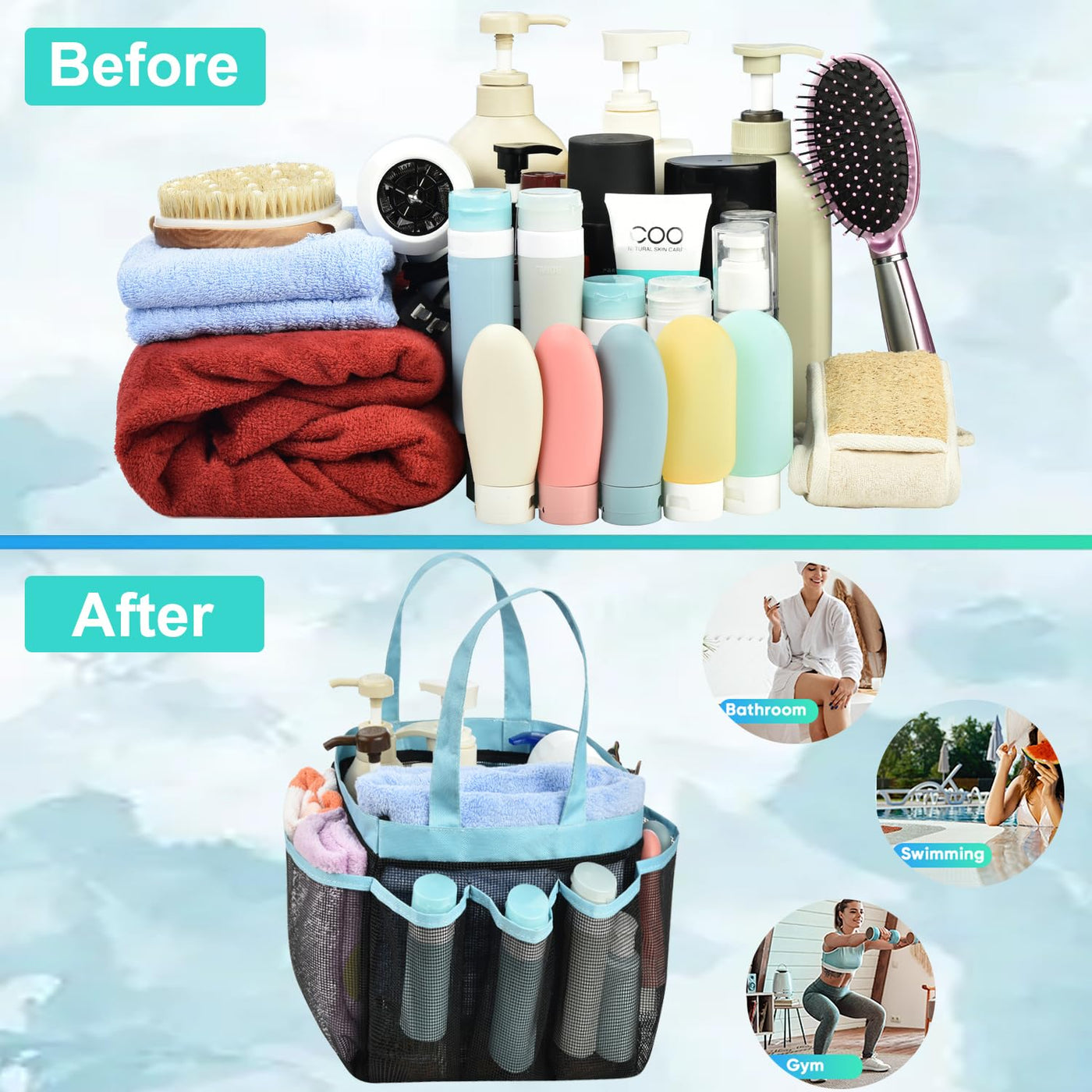 - Q: What makes this caddy suitable for college dorms? A: The Haundry Mesh Shower Caddy is suitable for college dorms due to its large size, multiple pockets for organization, and portability, making it ideal for shared living situations.