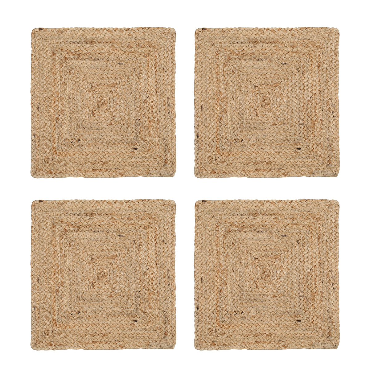 Hausattire Jute Braided Placemats 14x14 Inches - Natural Farmhouse Reversible Woven Boho Mats for Kitchen & Dining Table (Set of 4)