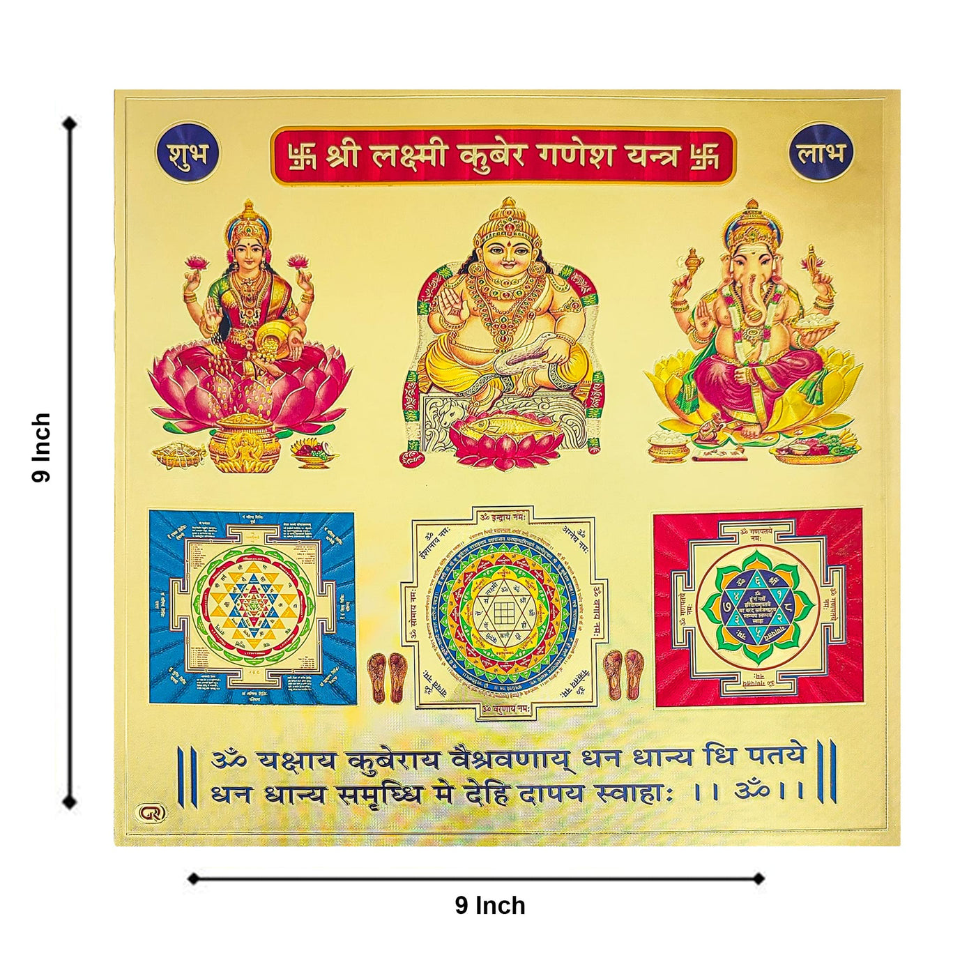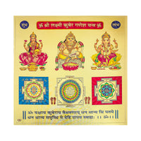 DescriptionHawai Shree Laxmi Kuber Ganesh Yantra 24k Gold Plated Poster Photo for Home Office Puja Ghar Worship use 23x23cm SFDI00205_NOF