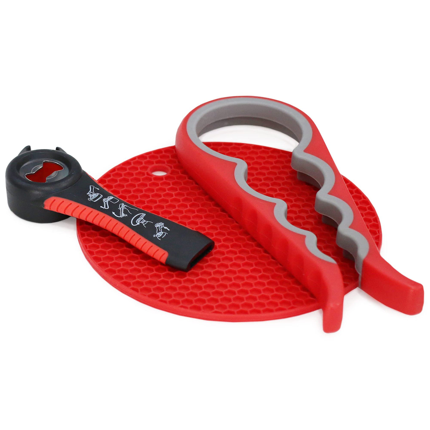Healthsmart 3-Piece Universal Jar Opener Bundle, 4-In-1 Jar Opener, Silicone Non-Slip Pad, 5-In-1 Bottle/Can Opener, Fsa & Hsa E