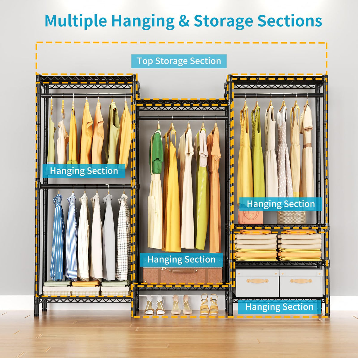 Heavy Duty Garment Rack Large Clothes Rack,Freestanding Closet Portable Clothing Rack With 8 Adjustable Wire Shelves And 4 Hang