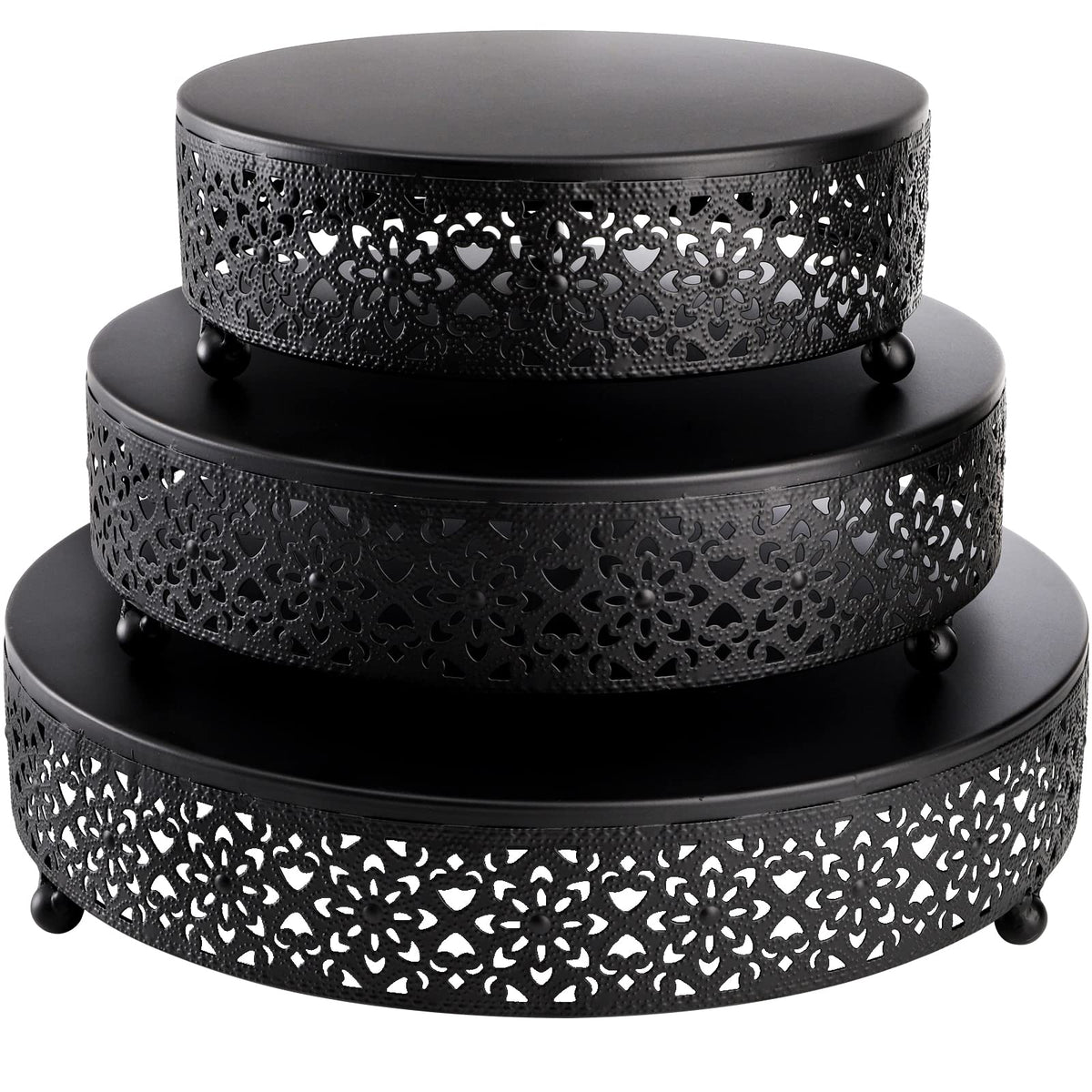 Hedume Set Of 3 Black Cake Stand, Round Metal Cake Stands, Dessert Display Cupcake Stands, Wedding Brithday Party Celebration De