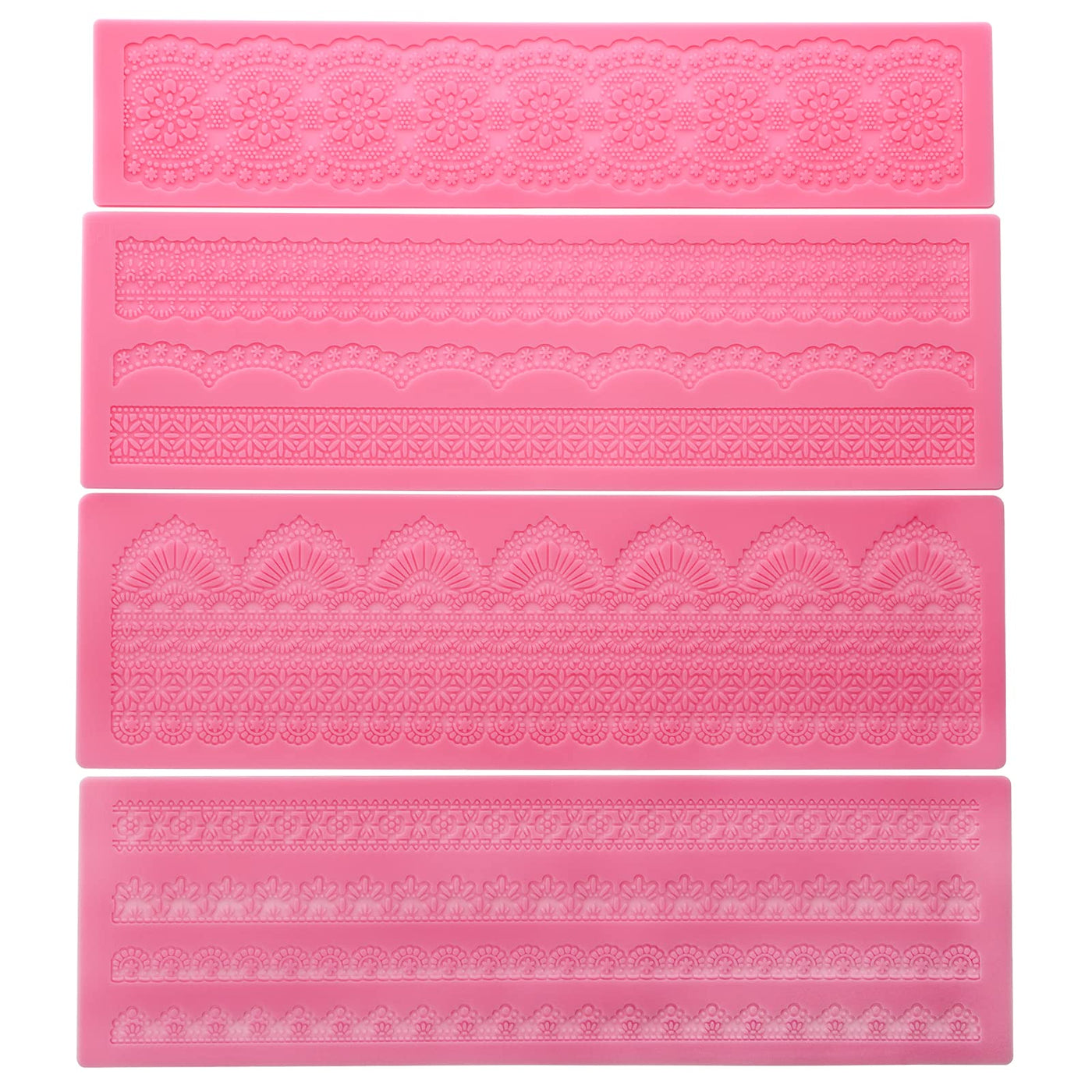 • Q: How many different styles of molds are included in the set? A: The set includes four different styles of pink lace molds, providing various options for cake decorating.