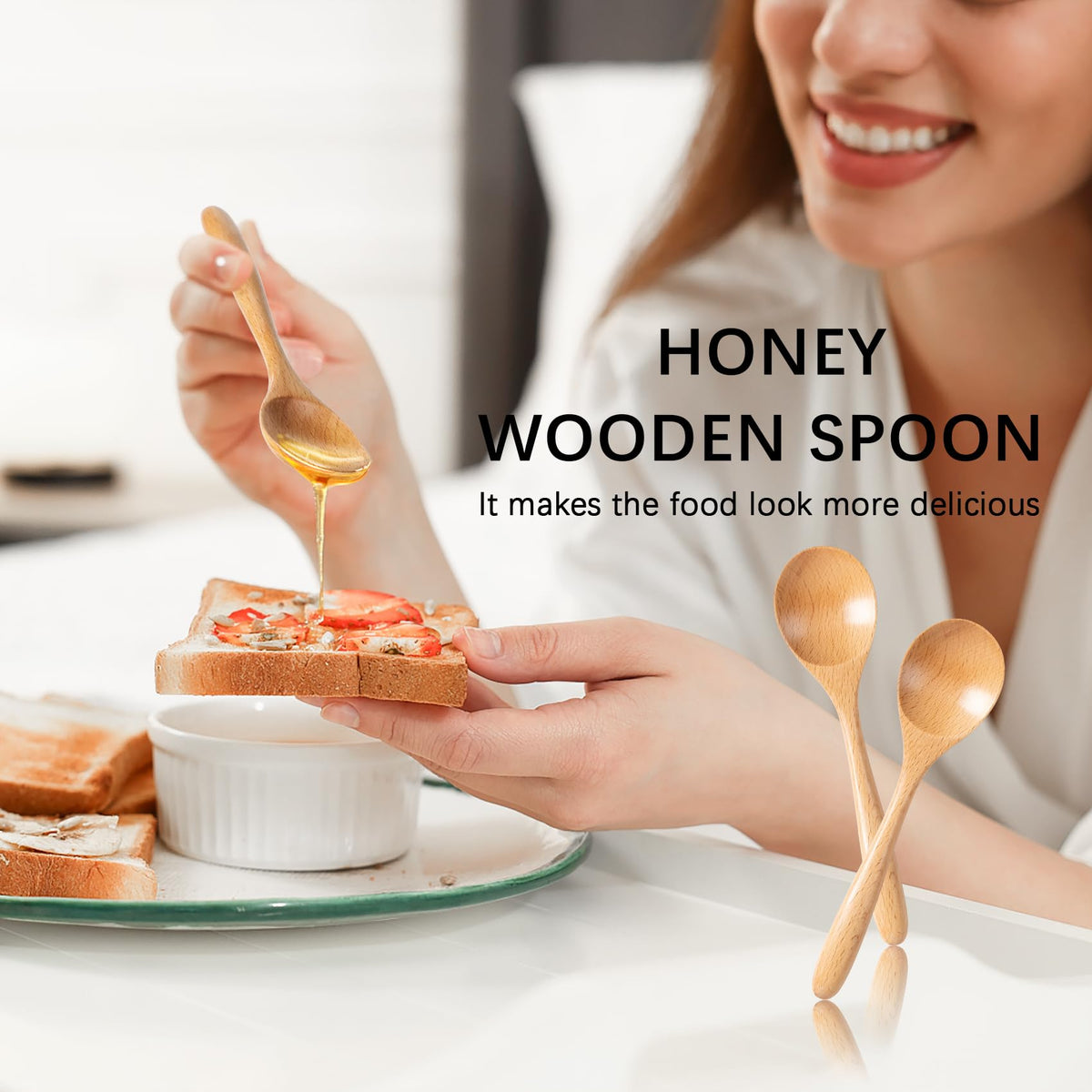 Hefild 6 Pcs Wooden Spoons For Honey, 6.7 Inch Small Wooden Spoons - Perfect For Tea, Coffee & Soup, Little Beech Wooden Serving