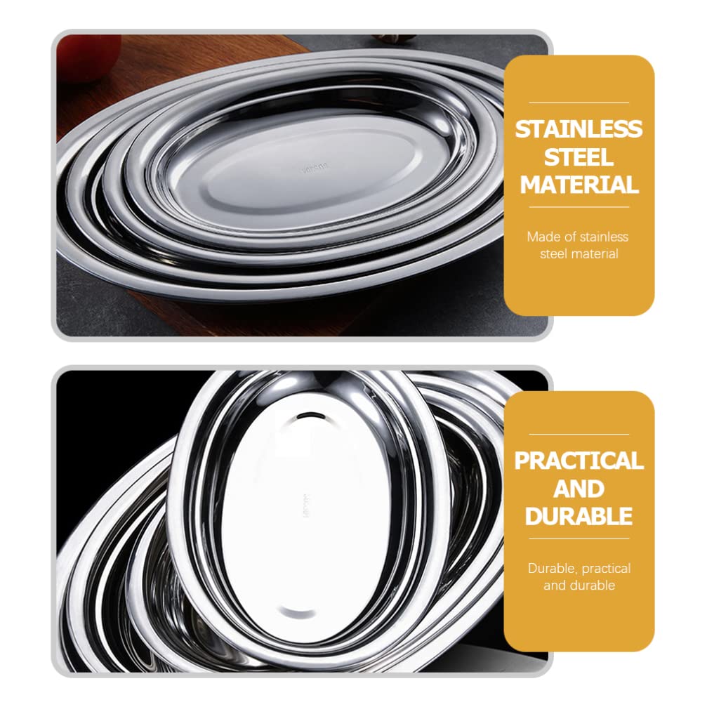 Hemoton Sizzle Platter Serving Platter Oval Fish Dish Stainless Steel Fish Plate Metal Food Serving Tray For Steaming Fish Desse