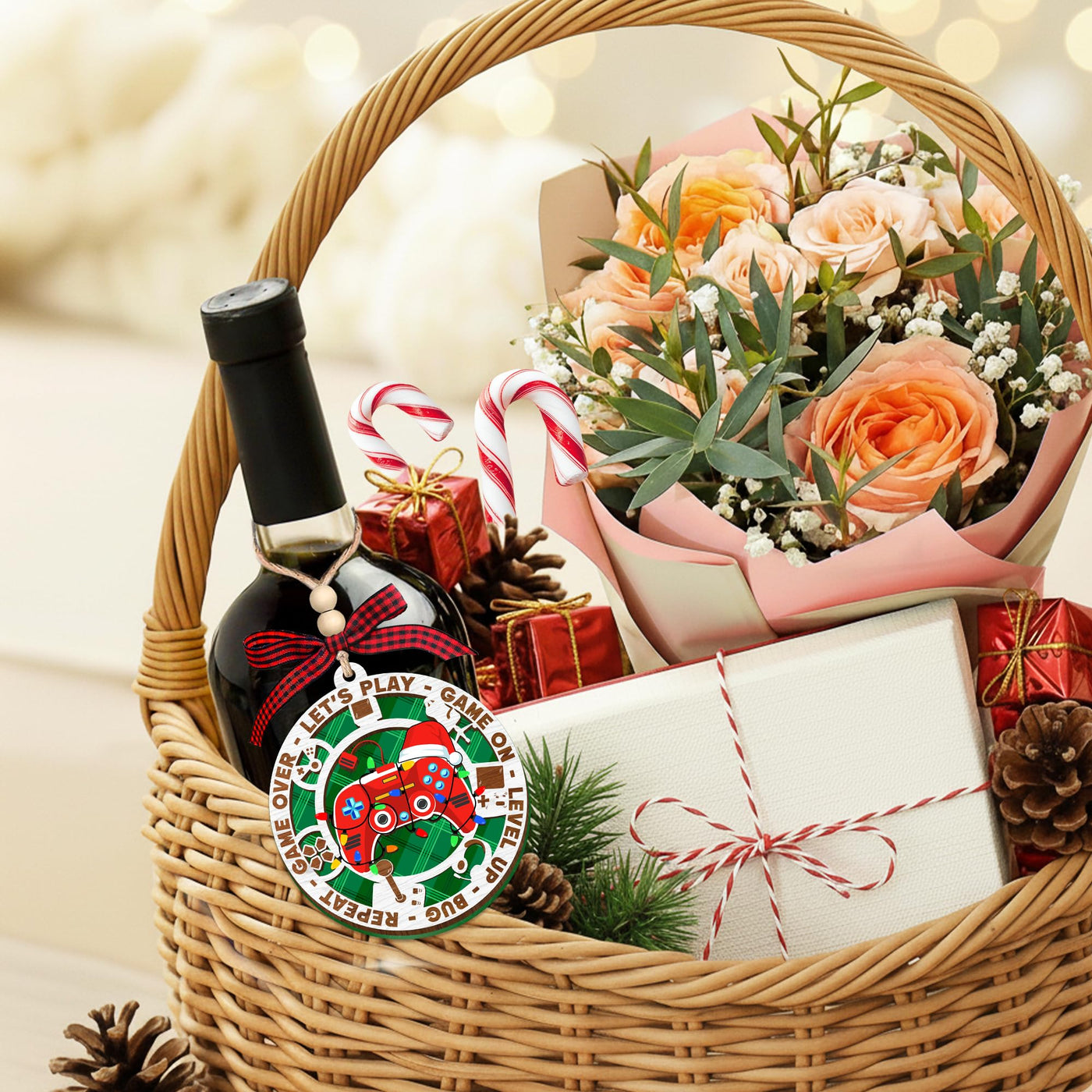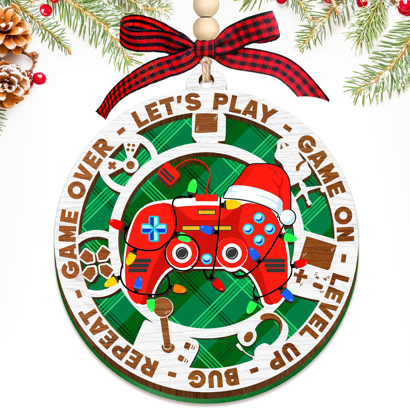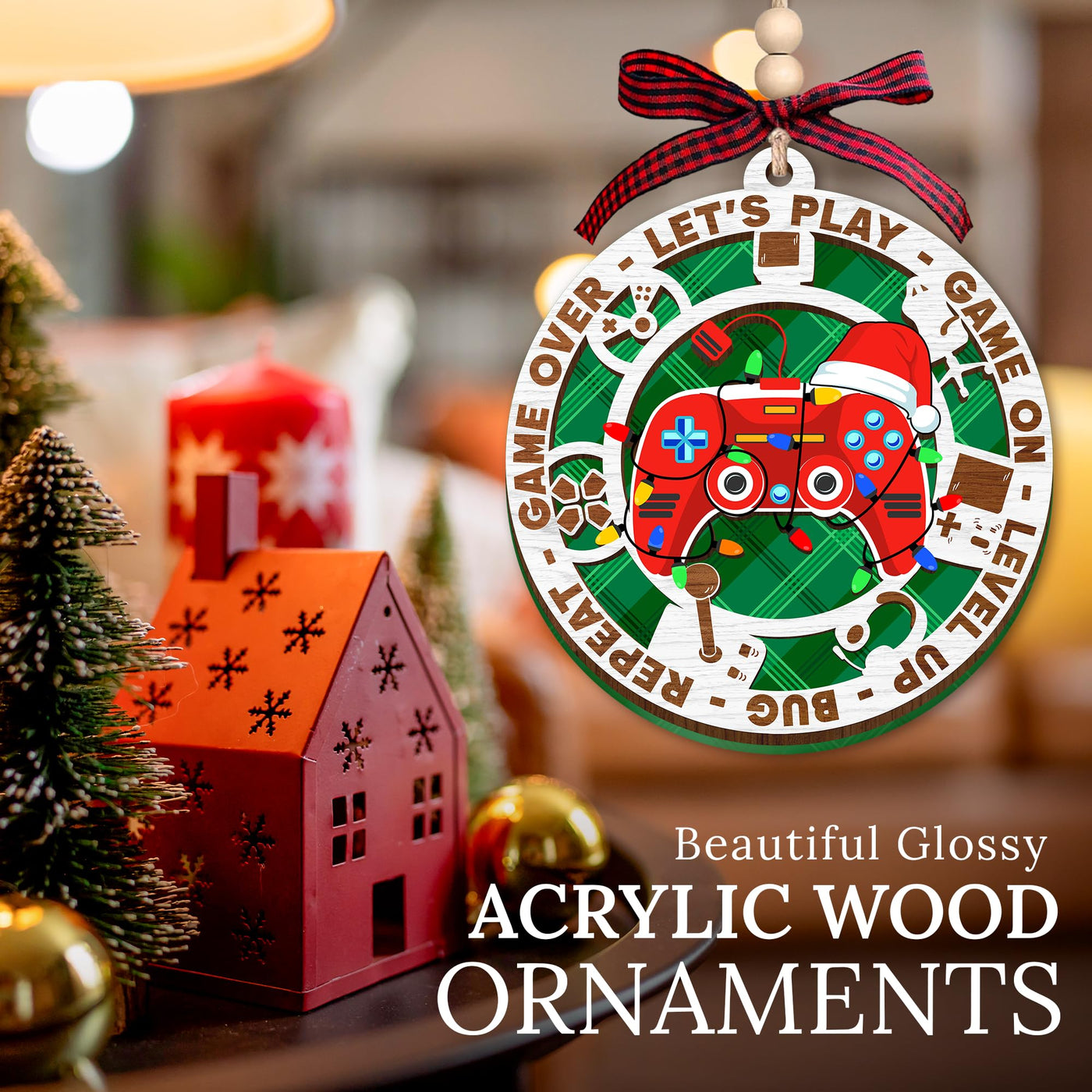 GAMING CHRISTMAS ORNAMENTS: Level up your holiday d cor with this vibrant gaming Christmas ornament, designed especially for players who live for high scores and festive vibes. Its a unique piece that brings holiday cheer to any gamers tree. Whether you're decorating a cozy home setup or a tabletop, this ornament adds a fun and personal touch that celebrates both Christmas and your favorite pastime. Suitable as gamer ornament, gamer christmas ornaments, gaming ornaments for christmas tree GAMER GIFTS: Looking for the perfect gift for the gamer in your life? This ornament makes a thoughtful and entertaining surprise that combines holiday magic with gaming culture. Its playful design, captures the essence of the gaming world in a fun holiday format. This ornament brings a smile to teen gamers, game-loving partners, or friends, and a geeky charm to their Christmas tree. Ideal for ornaments for teen boys, video game ornaments, gaming christmas gifts, gifts for video game lovers DELICATE DIMENSIONS: Our ornament measures approximately 3.4'' x 3.7'' and 0.2'' in thickness. Each ornament features a hole making it space-efficient and easy to transport wherever you'd like to display it TWO-LAYER MATERIAL: Each ornament is crafted with a two-layer design of durable wood and glossy acrylic, creating a lightweight yet sturdy piece with added depth and shine. This combination ensures lasting quality and a striking look that stands out beautifully ALL-INCLUSIVE SET: This set features an ornament, a hanging cord, and a delightful gift box. The gift box not only showcases the ornament beautifully but also provides secure storage for future holiday seasons. The included shiny hanging cord makes it easy to hang the ornament on any tree or desired location