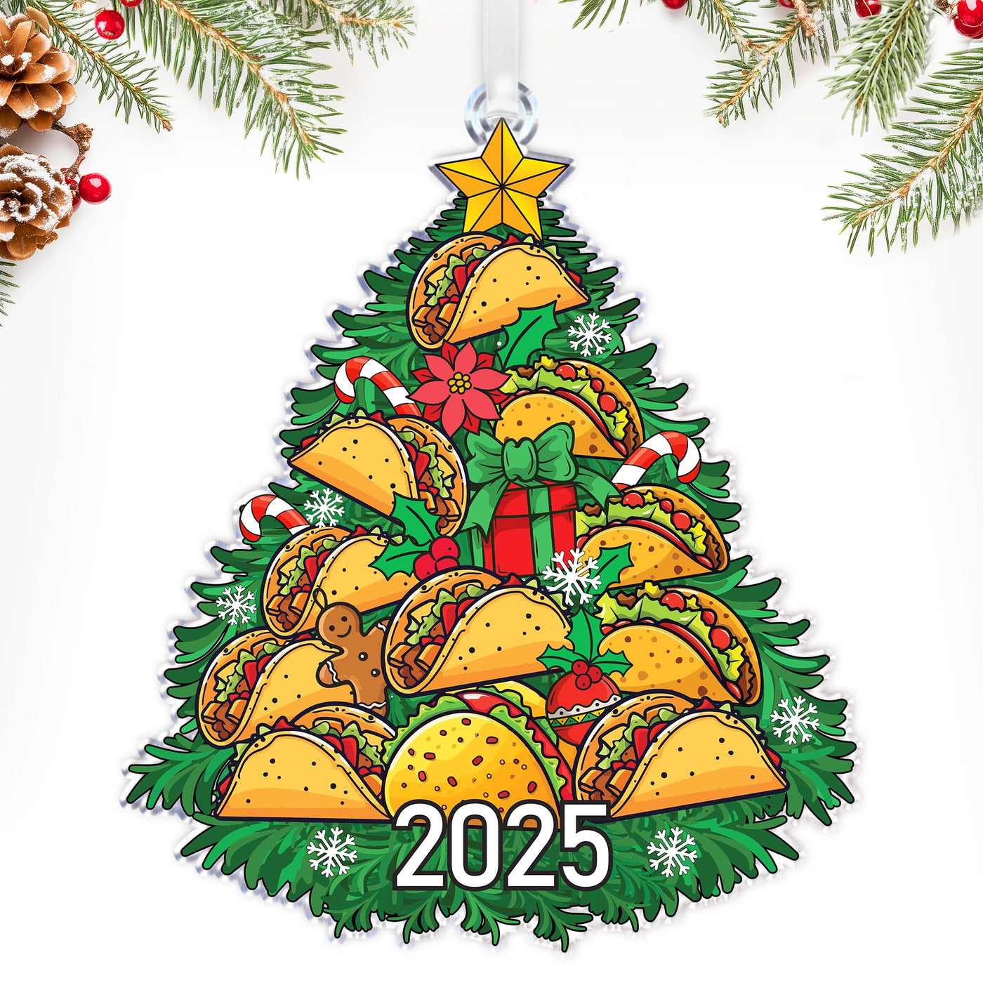 TACO ORNAMENTS FOR CHRISTMAS TREE: Add a festive and flavorful twist to your holiday decorations with taco ornaments that are perfect for any Christmas tree. These ornaments bring personality and fun to your d cor, making them a great conversation starter for gatherings and celebrations TACO GIFTS FOR TACO LOVERS: Delight your favorite taco enthusiast with a playful and cheerful gift that celebrates their love for tacos. Whether for friends, family, or coworkers, this ornament makes a unique and thoughtful holiday surprise for anyone who lives for Taco Tuesday DELICATE DIMENSIONS: Our ornament measures approximately 3.5 x 4.1 and 0.12 in thickness. Each ornament features a hole making it space-efficient and easy to transport wherever you d like to display it ACRYLIC MATERIAL: Made from durable yet lightweight acrylic, this ornament is designed to shine beautifully season after season. Each piece comes with a frosted-white protective film to prevent scratches during shipping - simply peel it away to reveal the smooth, glossy finish in all its brilliance ALL-INCLUSIVE SET: This set features an acrylic ornament, a hanging ribbon, and a delightful gift box. The gift box not only showcases the ornament beautifully but also provides secure storage for future holiday seasons. The included shiny hanging ribbon makes it easy to hang the ornament on any tree or desired location