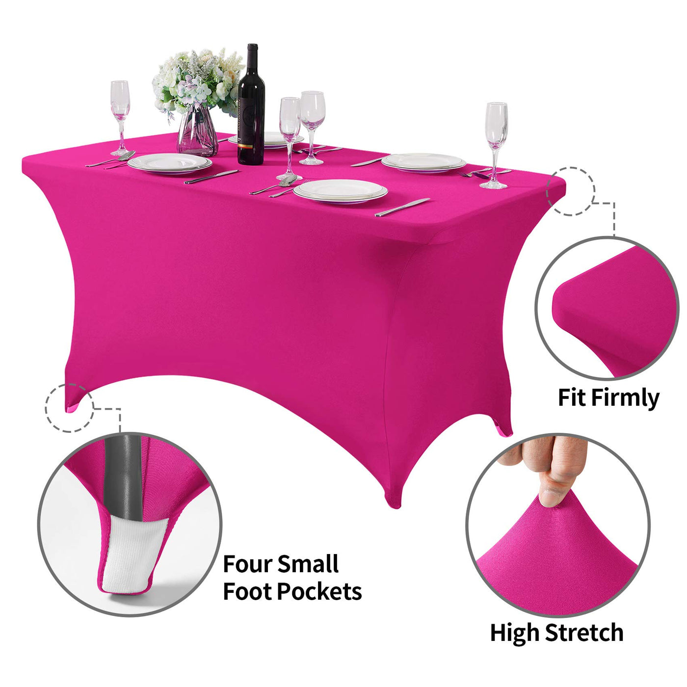 Hezuzo 2Pack Spandex Table Cover For 4Ft Table Universal Fitted Stretch Tablecloth For Party, Banquet, Wedding And Events-Fuchsi