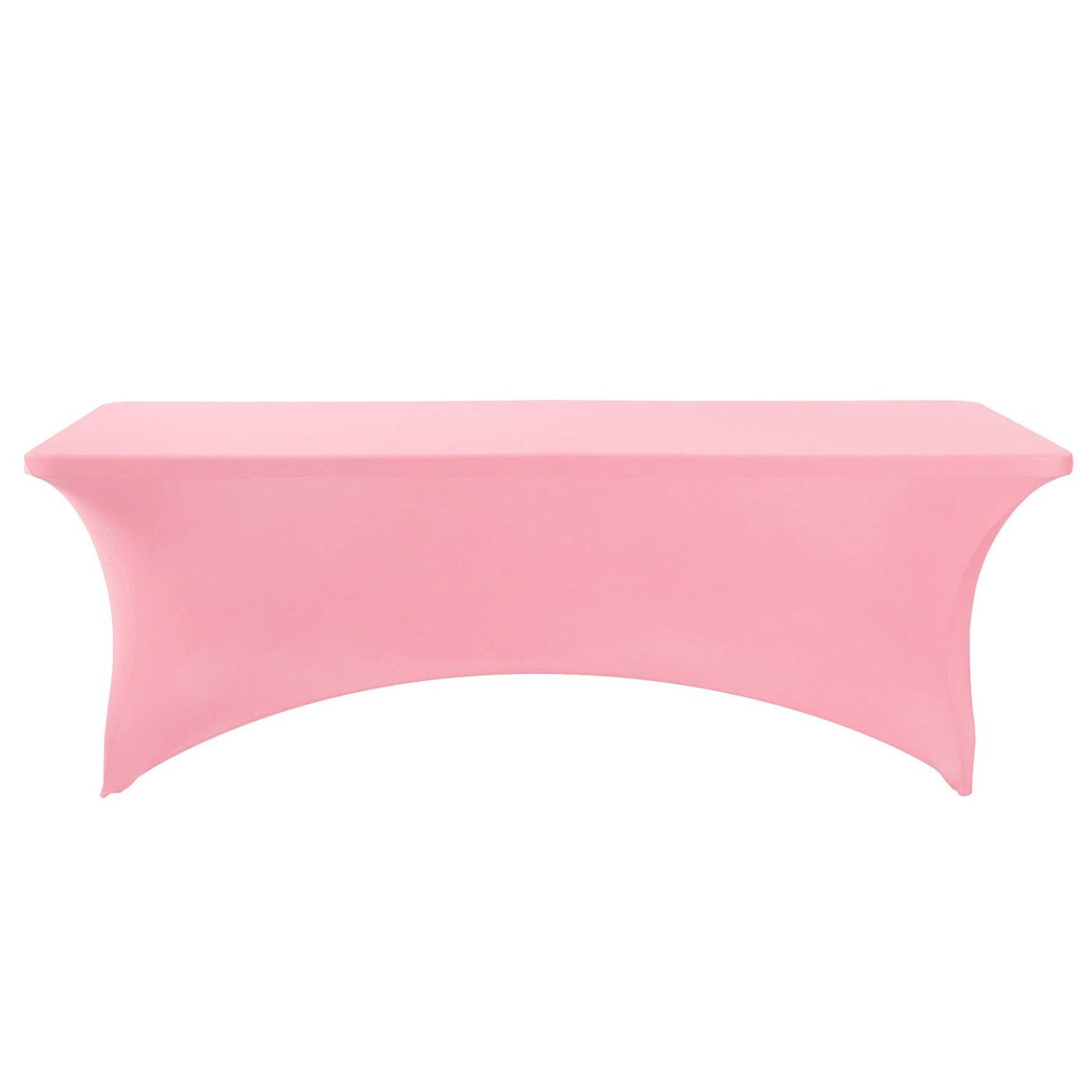 Hezuzo 2Pack Spandex Table Cover For 8Ft Table Universal Fitted Stretch Tablecloth For Party, Banquet, Wedding And Events-Rose Q
