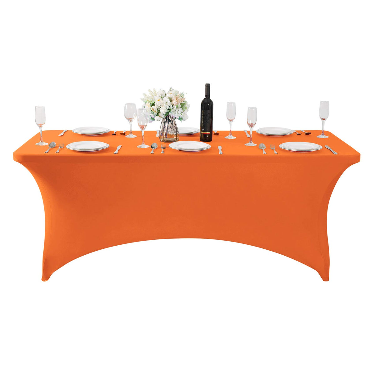 Hezuzo Spandex Table Cover For 6Ft Table Universal Fitted Stretch Tablecloth For Party, Banquet, Wedding And Events-Orange