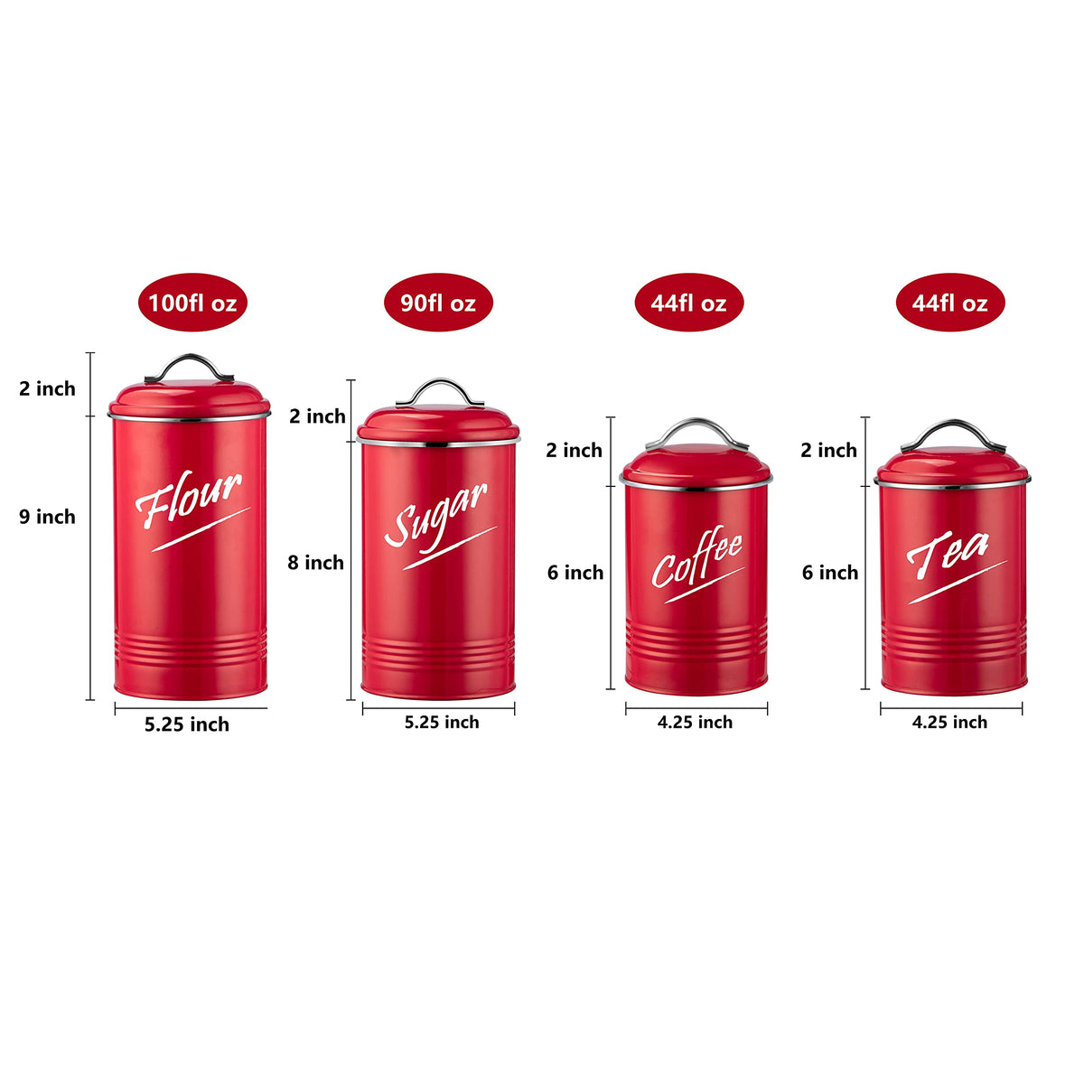 Hillbond Canisters Sets Red Food Storage Canisters Containers: Carbon Steel with Powder Coated Decorative Storage Jars Set of 4 (Red)