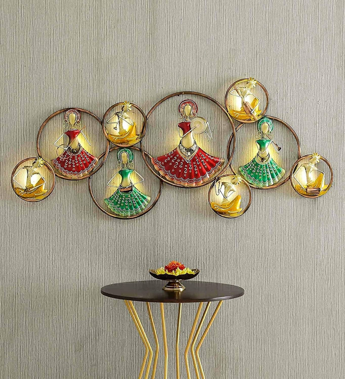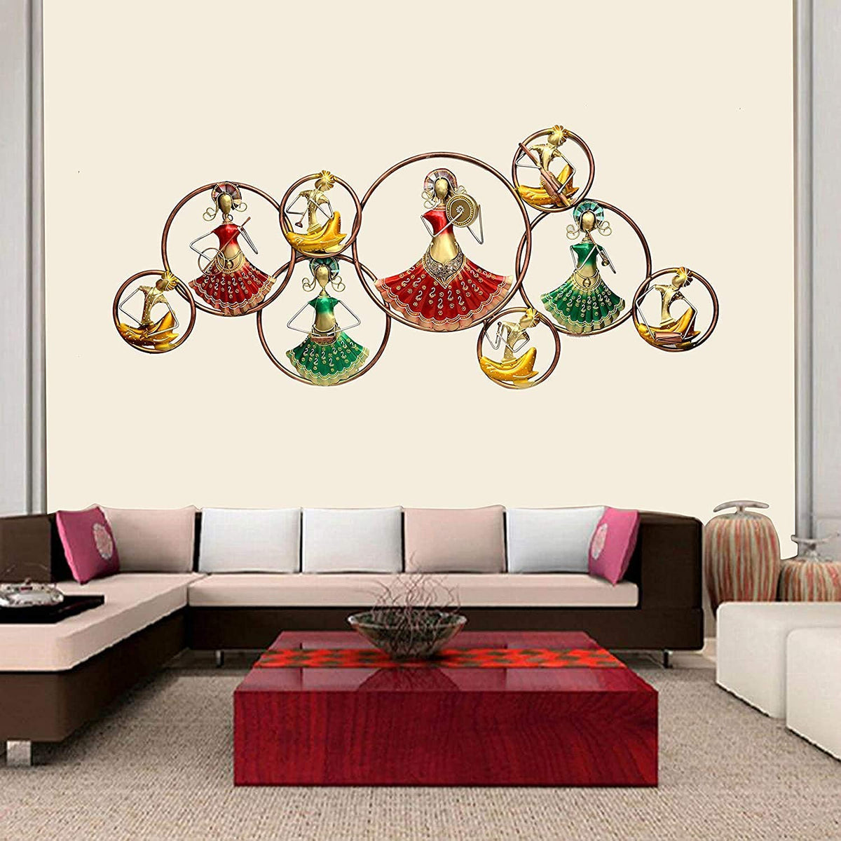 HIMMART Hand Crafted Metal Doll Musicians Circle Wall Art in Iron Metal Wall hanging Doll with LED Light (58x4x25 In) multicolor