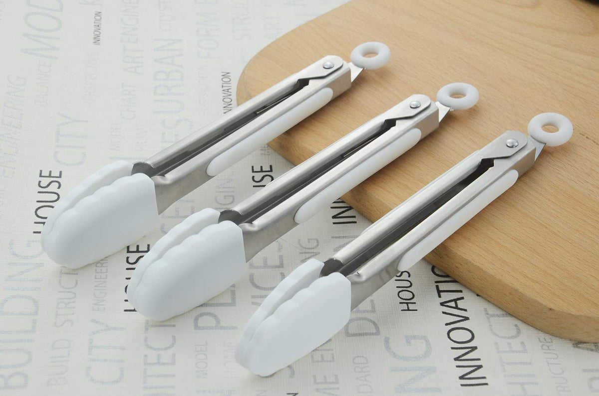 • Q: How many tongs are included in the package? A: The package includes a set of three 7-inch small silicone tongs, all in white.