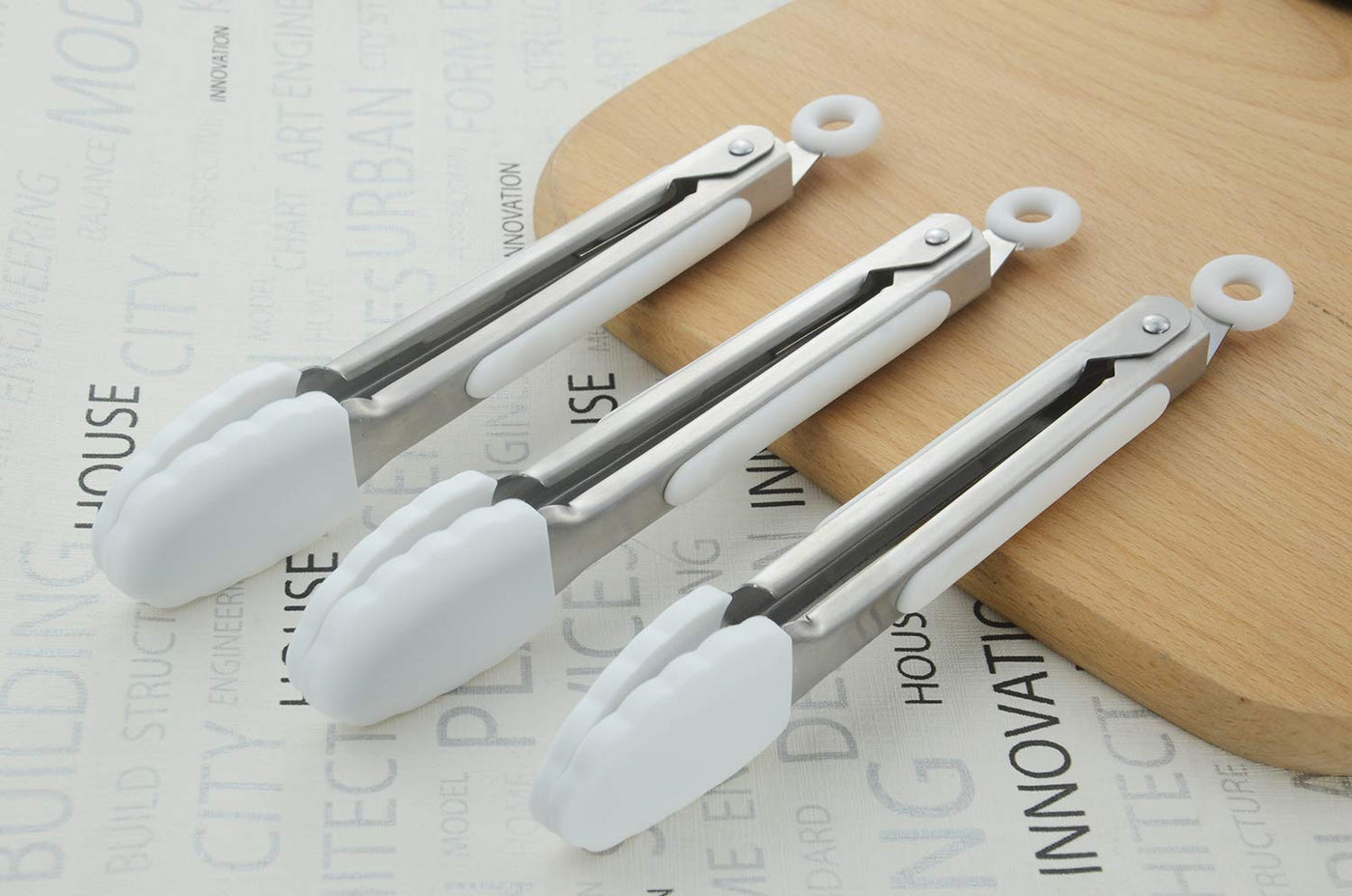 Hinmay Mini Silicone Tongs 7-Inch Small Salad Tongs, Set Of 3 (White)