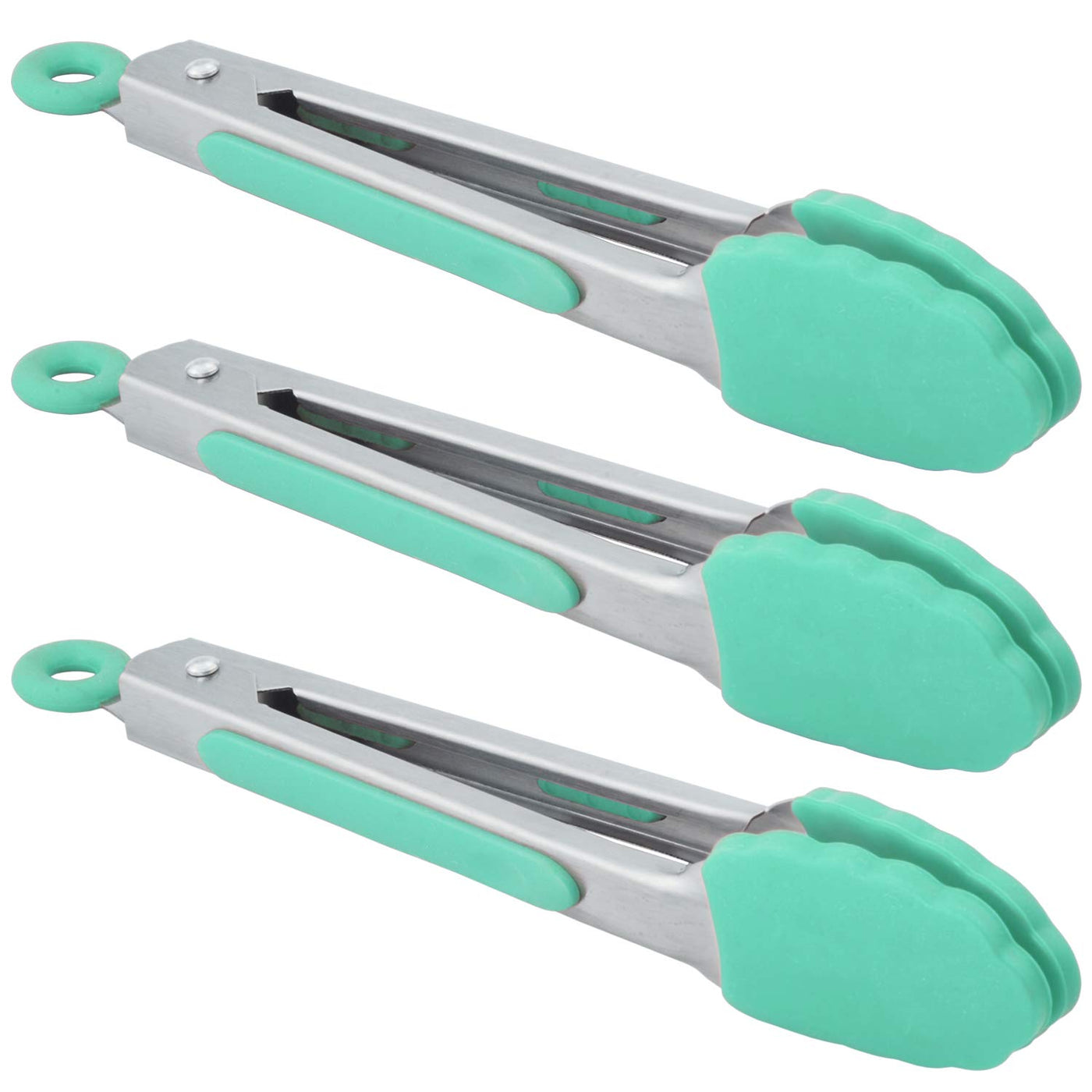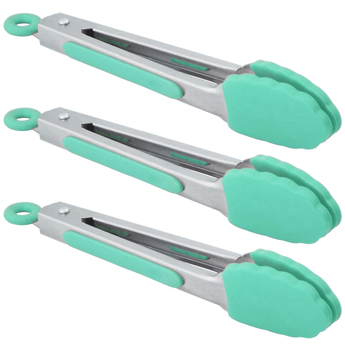 Hinmay Small Appetizer Tongs 7-Inch Silicone Tipped Kitchen Tongs, Set Of 3 (Mint)