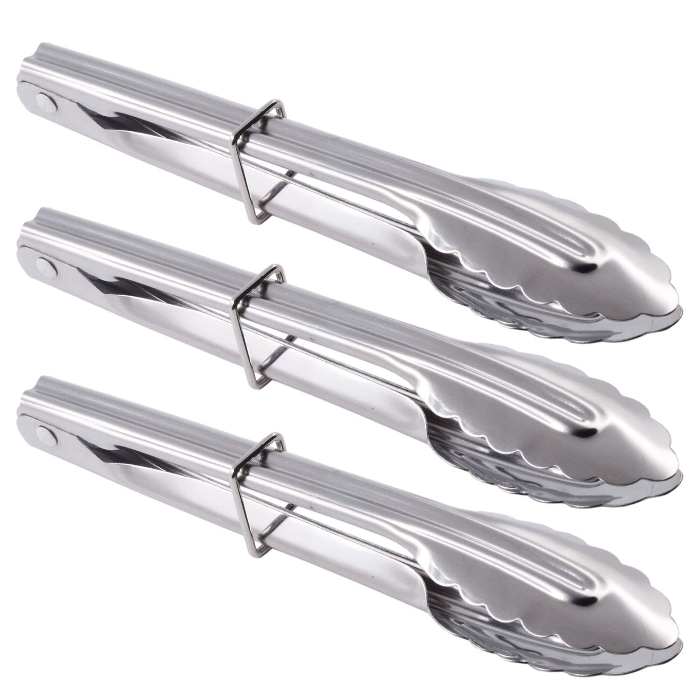 Hinmay Small Stainless Steel Serving Tongs 7-Inch Salad Tongs, Set Of 3 (Silver)