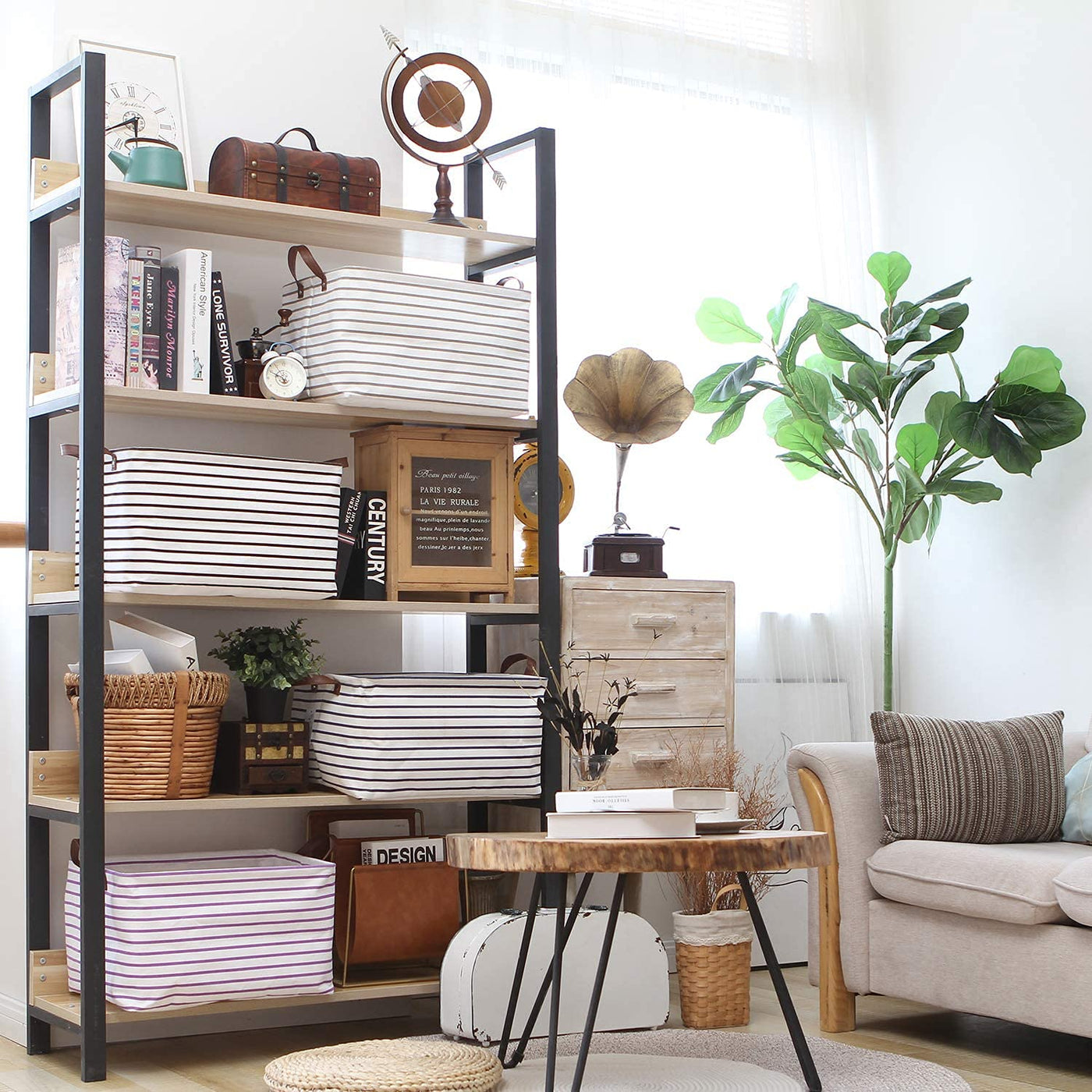 • Q: What design options are available for this storage basket? A: The Hinwo Fabric Storage Basket features a stylish navy blue and white stripe design that fits well with various home decor styles.