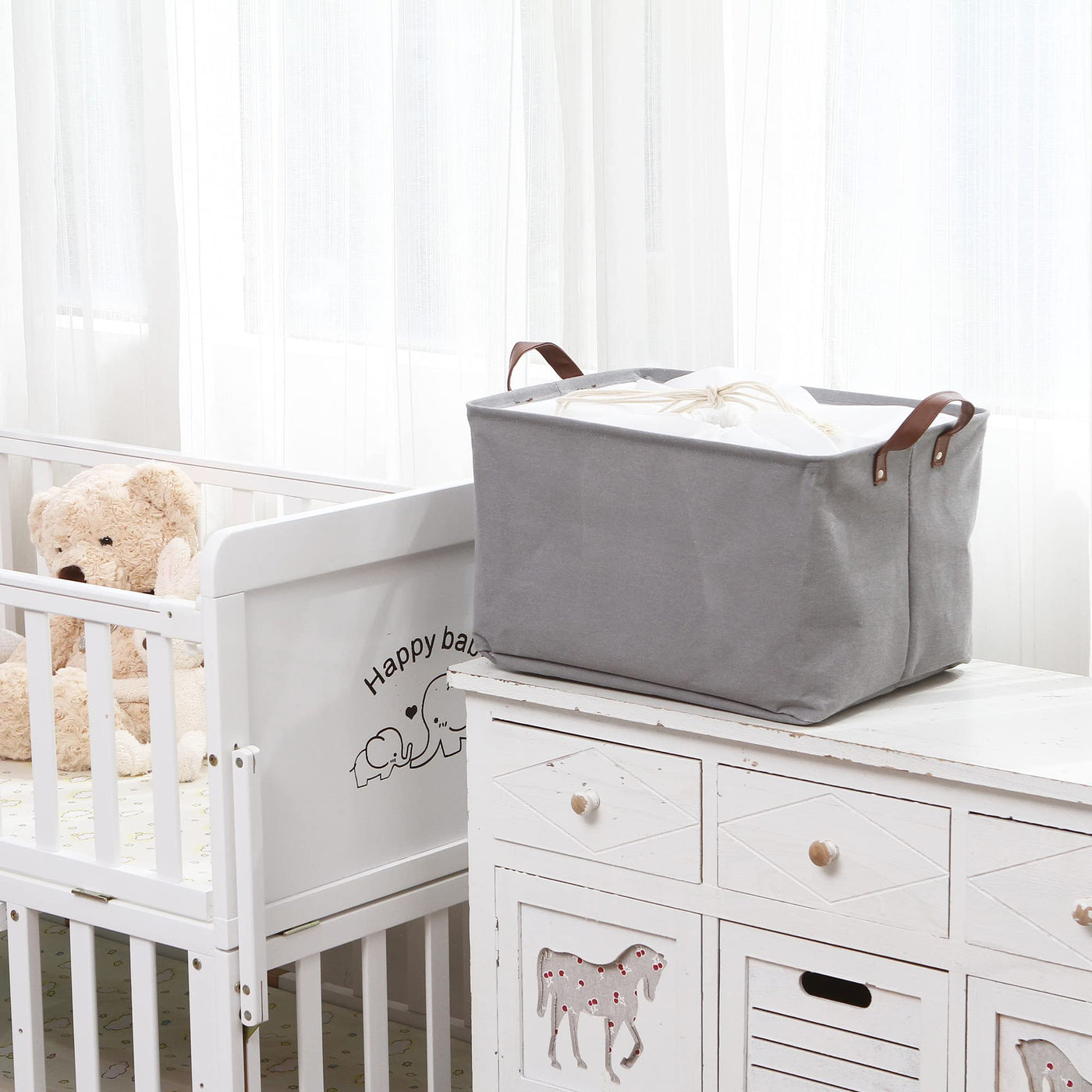 • Q: What types of items can I store in these bins? A: You can store a variety of items, including clothes, blankets, towels, toys, and nursery supplies.