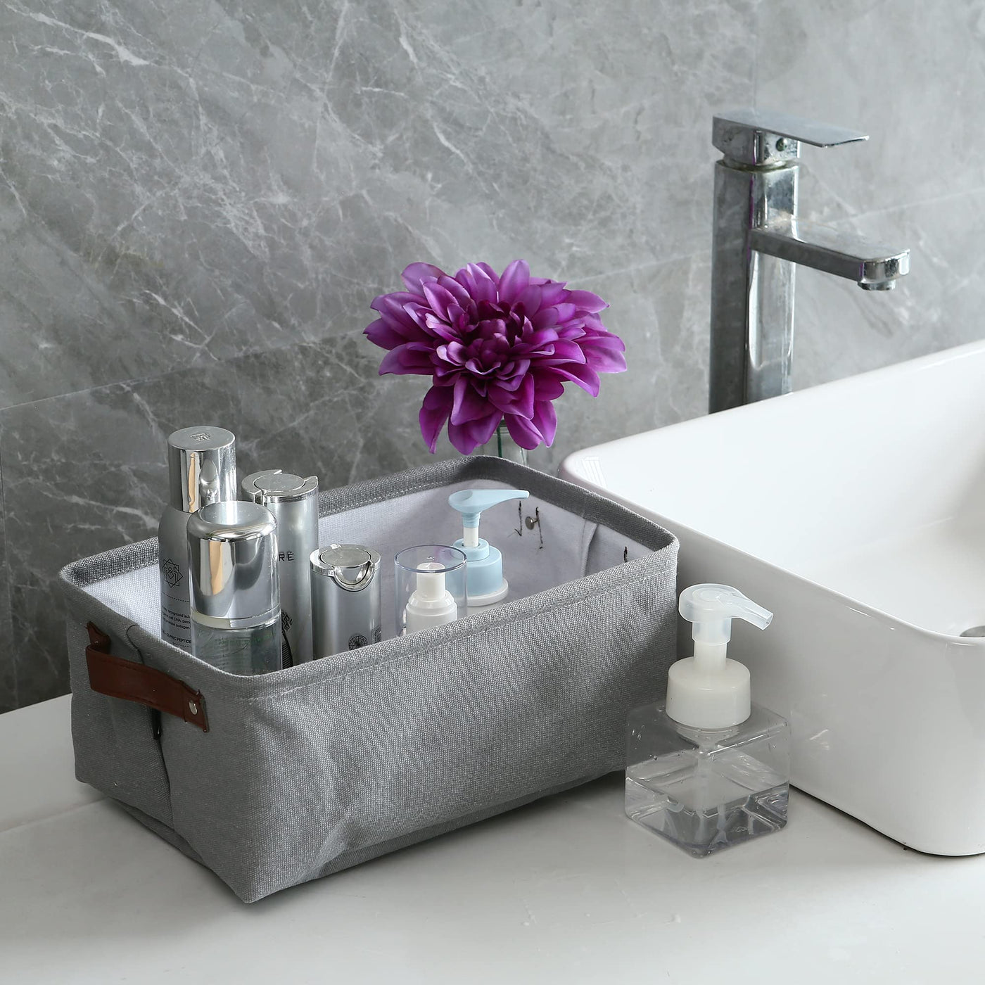 Hinwo 6-Pack Small Canvas Fabric Storage Baskets Set With Handles, Open Storage Bins, Cube Storage Organizer, Shelf Organizer Bi
