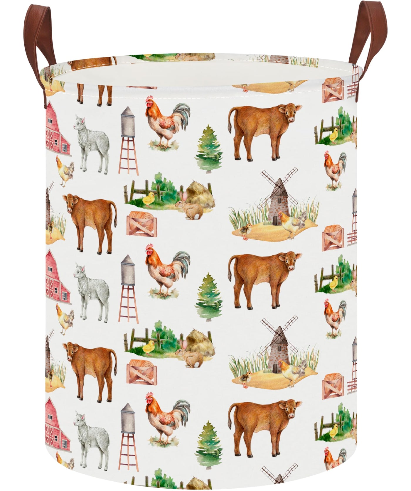 Hkec 19.7 Laundry Basket,Kids Dirty Clothes Hamper,Waterproof Toys Storage Bin,Room Decor,Gift Baskets,Nursery Hamper(Farm)