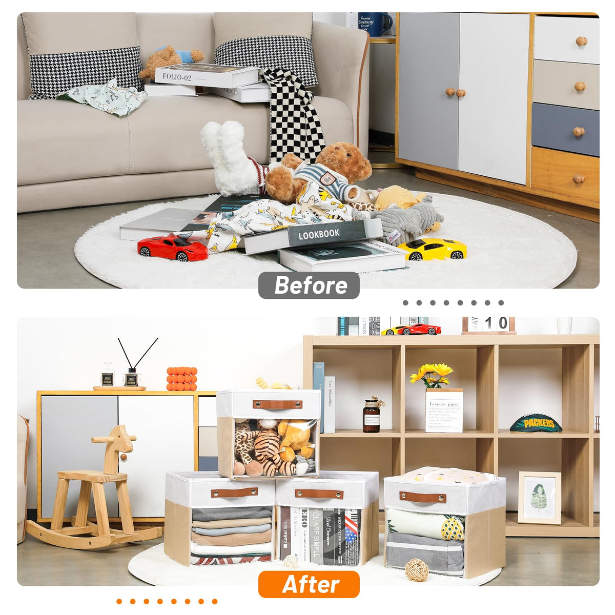 Hnzige 11 Inch Cube Storage Bin With Clear Window,Foldable Cloth Bins For Shelves, Fabric Storage Cube For Organizing Shelve Clo