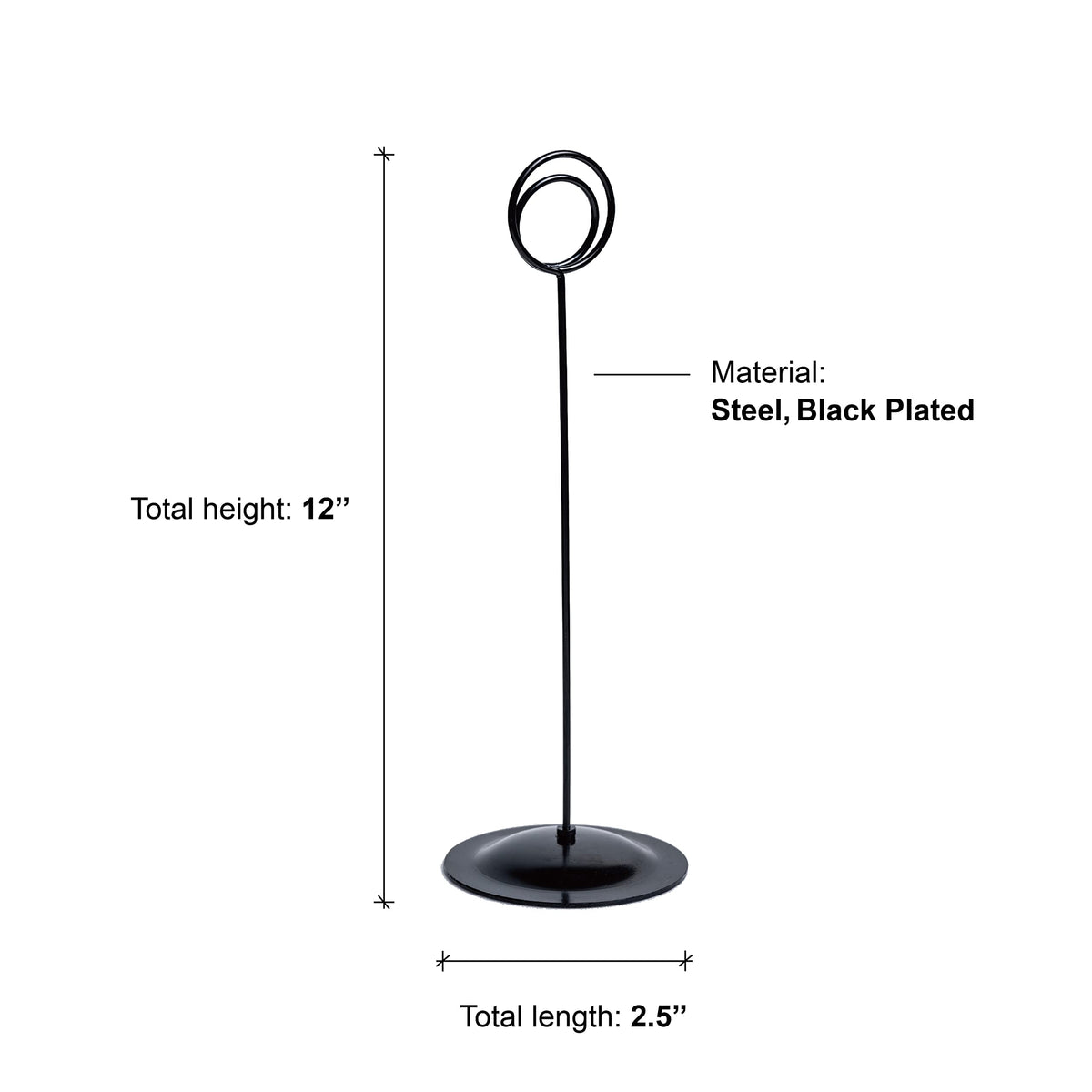 - Q: What is the diameter of the base of the holders? A: The base of each table number holder has a diameter of 2.5 inches.
