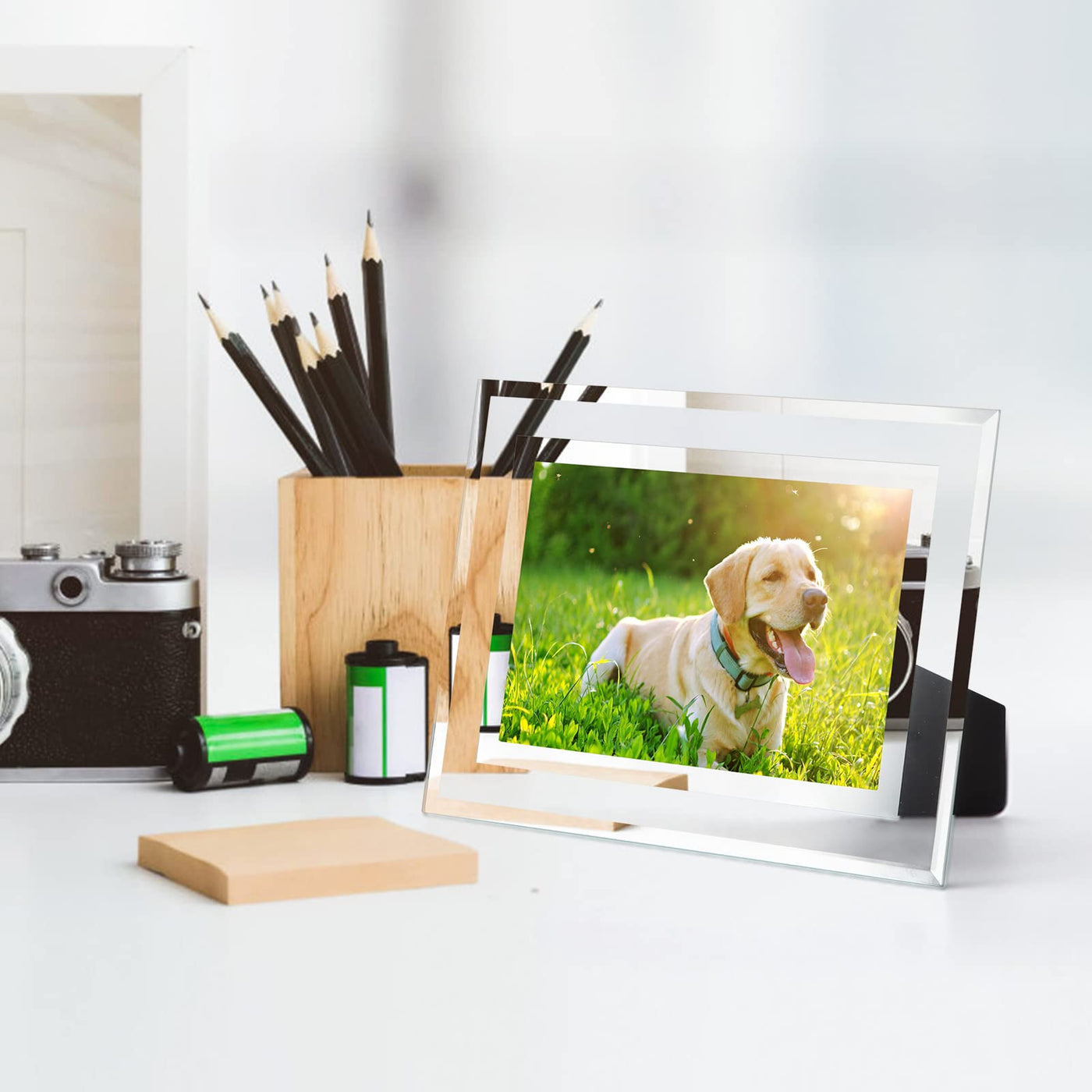 Hoikwo Bulk 5x7 Picture Frames, 4 Packs Silver Photo Frames 5 by 7, Glass Wedding Frames 5x7, Clear Mirror Wedding Photo Frames, Only for Tabletop Display Vertically or Horizontally