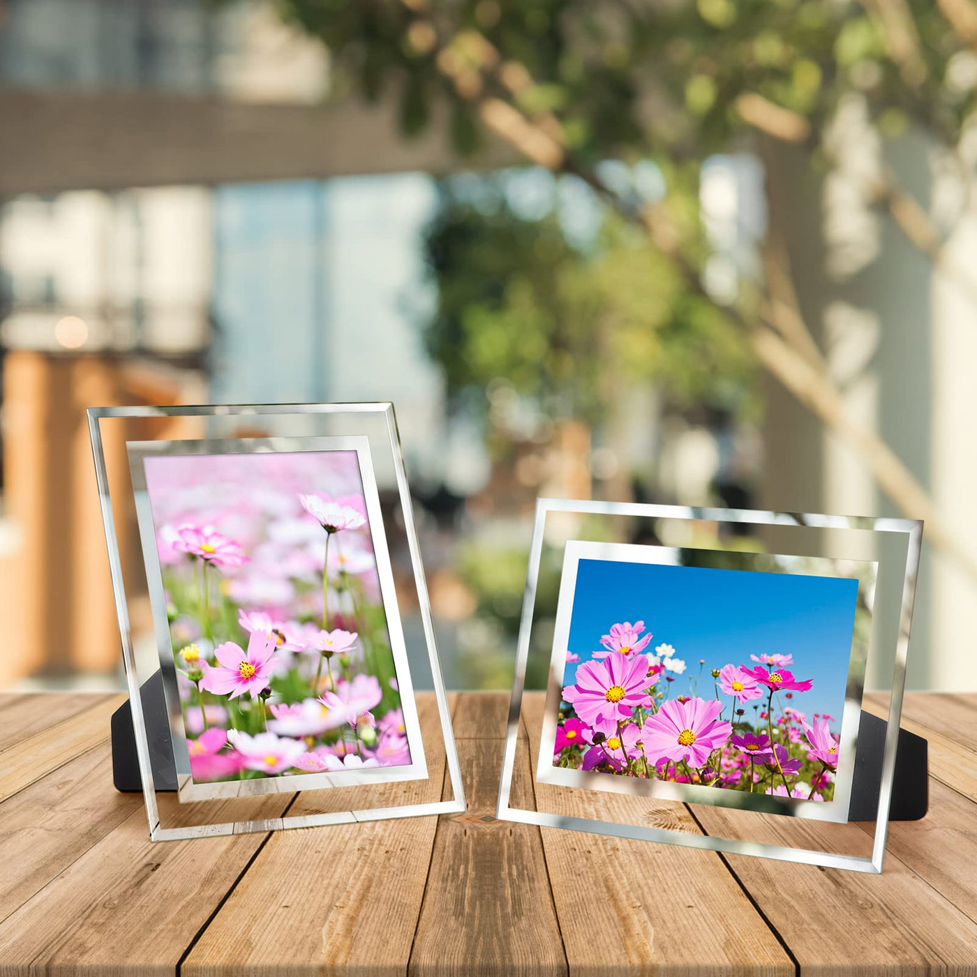 Hoikwo Bulk 5x7 Picture Frames, 4 Packs Silver Photo Frames 5 by 7, Glass Wedding Frames 5x7, Clear Mirror Wedding Photo Frames,