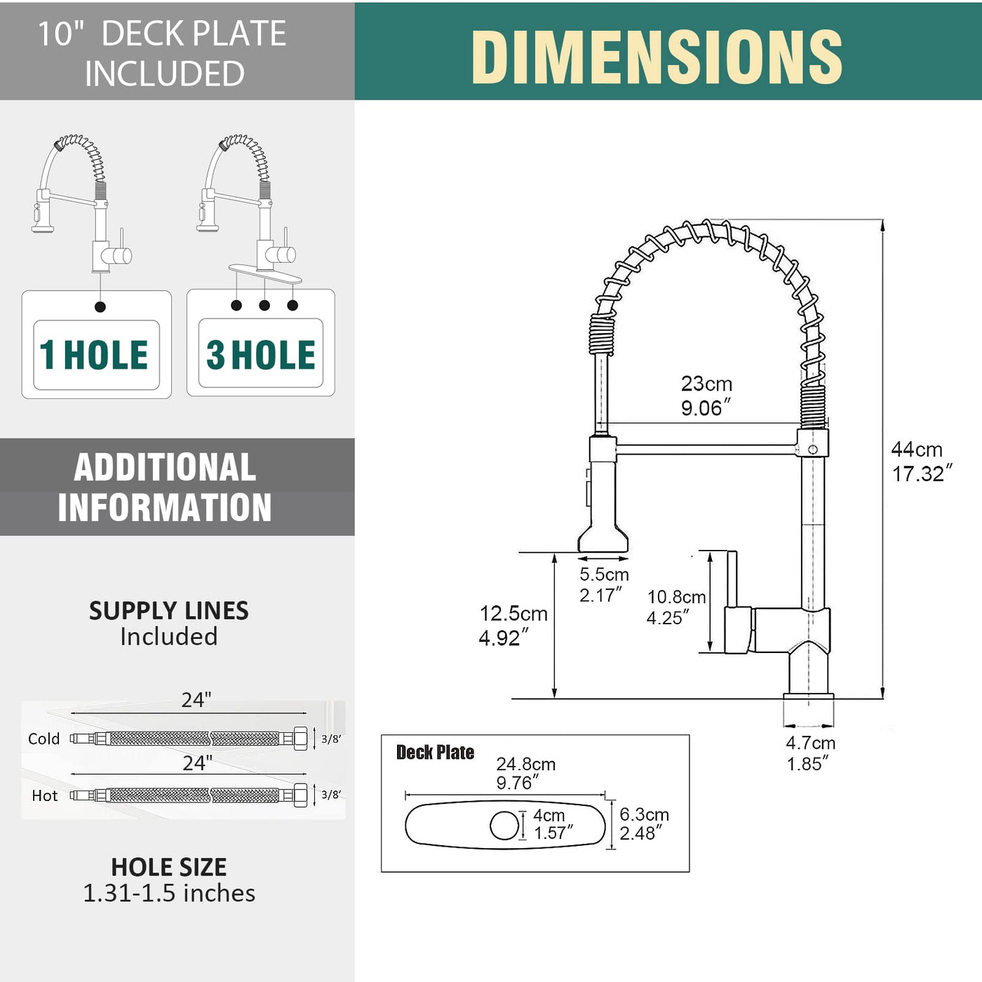 Hoimpro Brass Spring Kitchen Faucet With Pull Down Sprayer With Cover Plate, Rv Kitchen Sink Faucet With Cupc Hoses ,3 Function