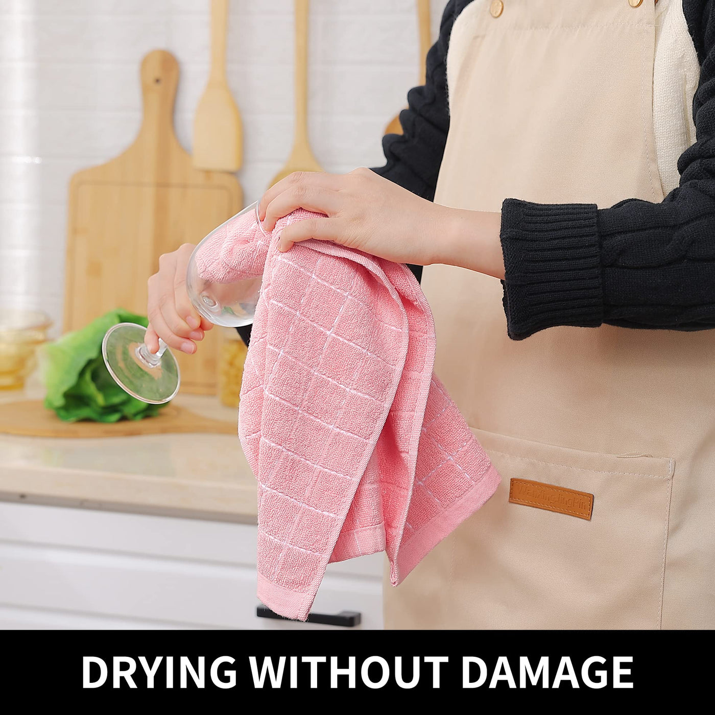 Homaxy 100% Cotton Terry Kitchen Towels(Pink, 13 X 28 Inches), Checkered Designed, Soft And Super Absorbent Dish Towels, 4 Pack