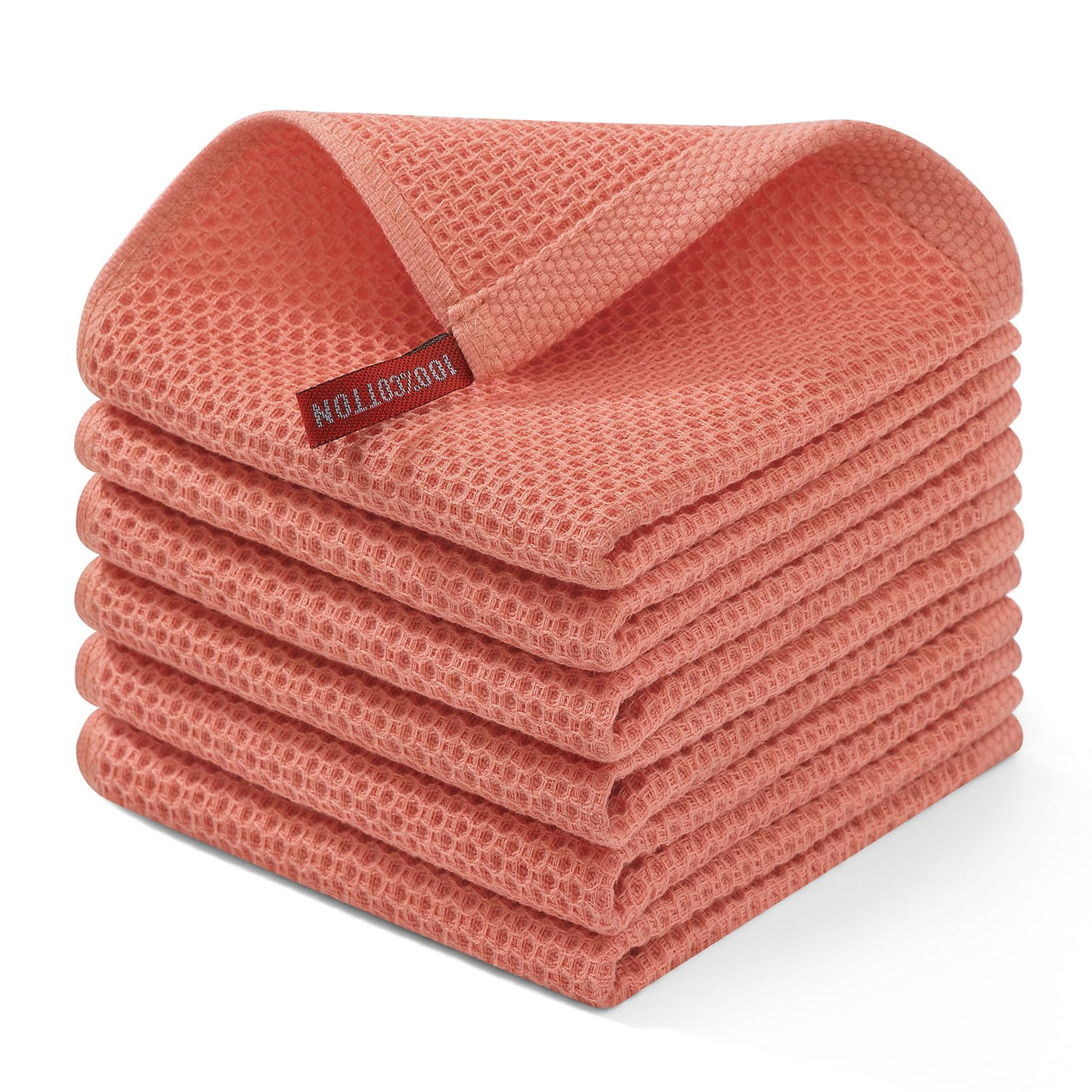 Homaxy 100% Cotton Waffle Weave Kitchen Dish Cloths, Ultra Soft Absorbent Quick Drying Dish Towels, 12 x 12 Inches, 6-Pack, Cora