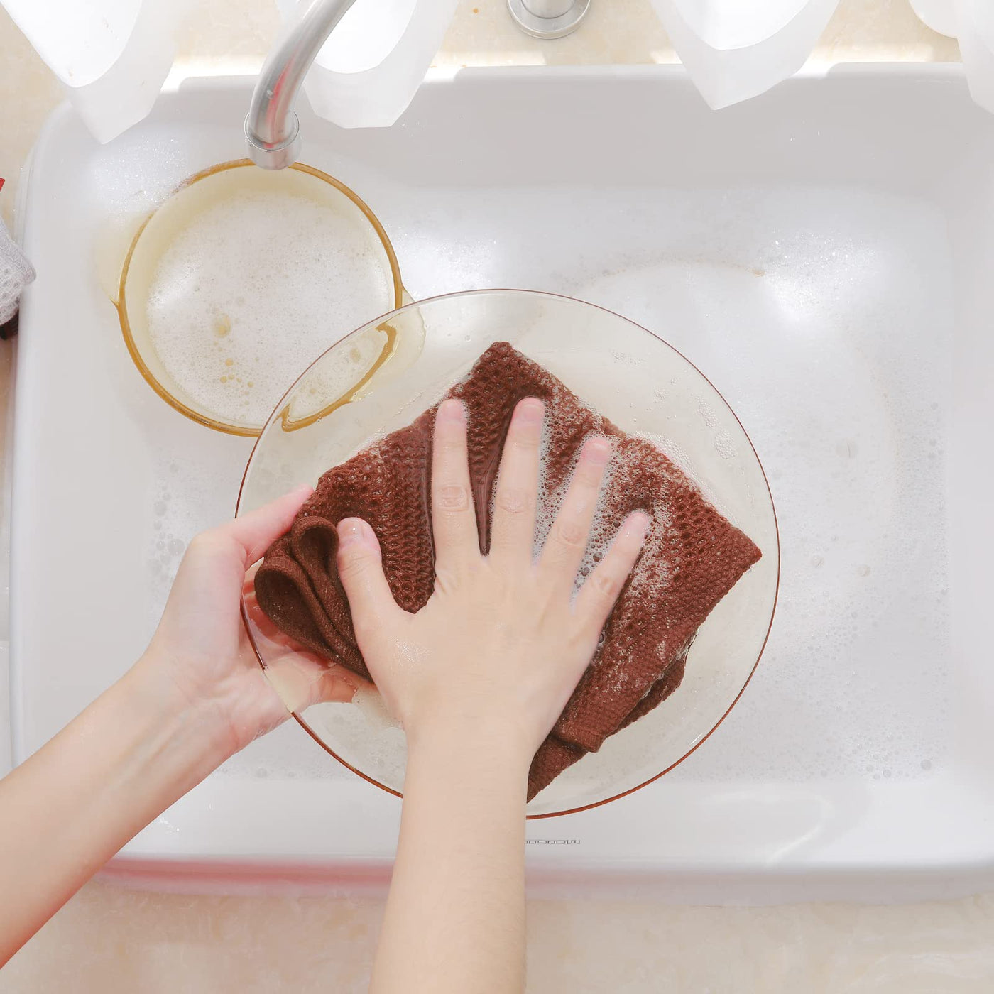Homaxy 100% Cotton Waffle Weave Kitchen Dish Cloths, Ultra Soft Absorbent Quick Drying Dish Towels, 12X12 Inches, 6-Pack, Rust