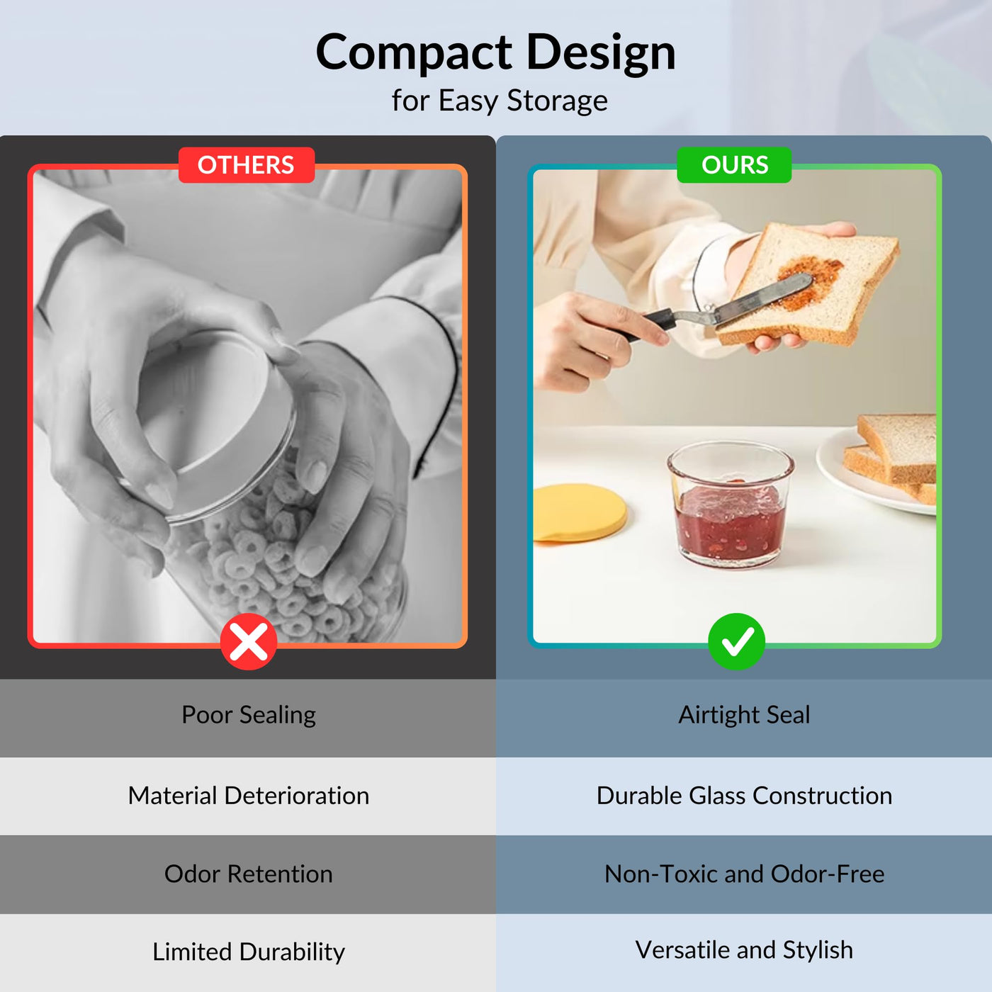Homeessentials Glass Containers With Lid - 260Ml Leak-Proof Glass Sealed Jar With Lid|Food Grade Ideal For Kitchen,Refrigerator,