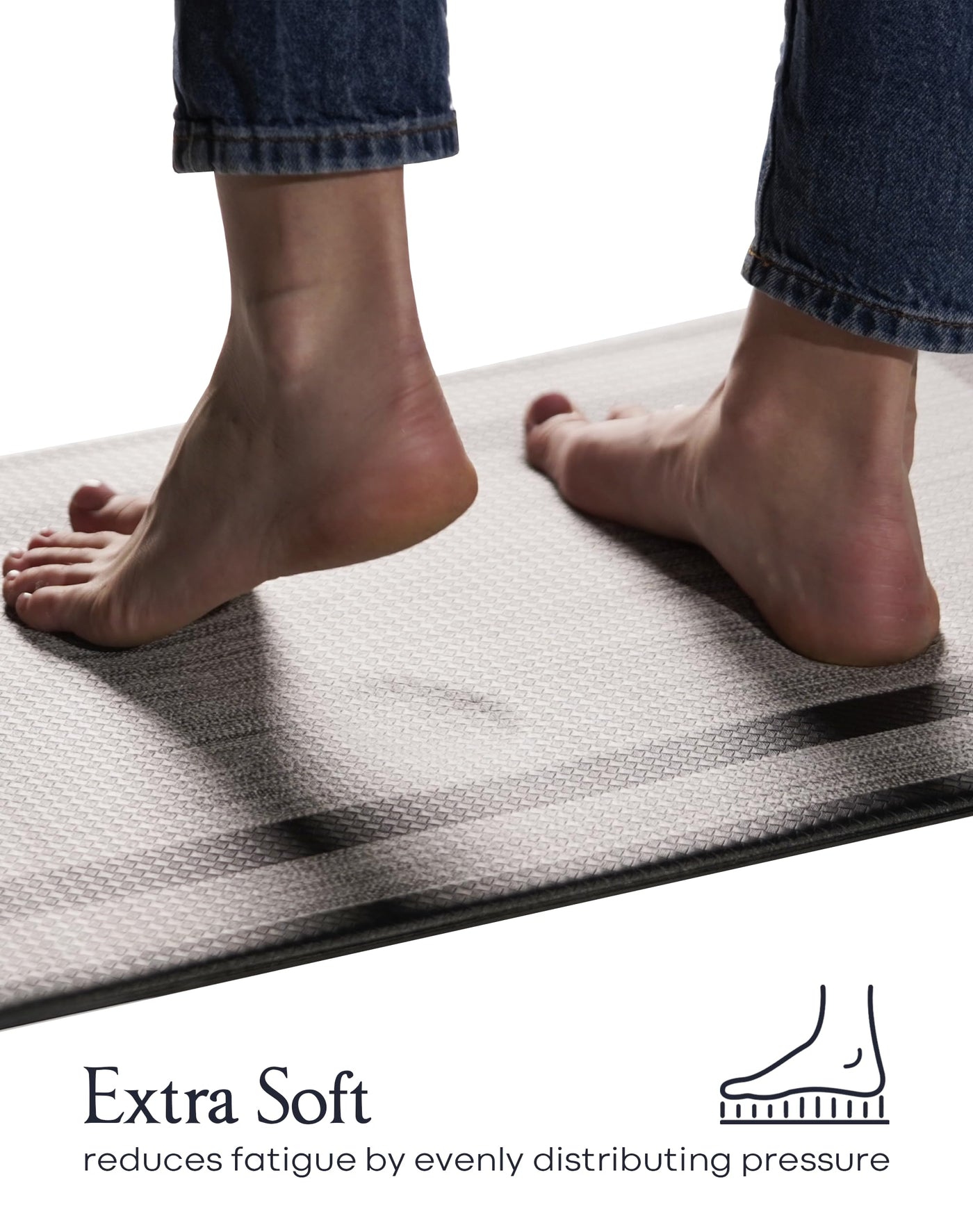 - Q: How do the mats help with fatigue? A: These anti-fatigue mats are designed to alleviate pressure on your feet and joints, providing support that helps maintain posture and avoid lower back pain while standing for long periods.
