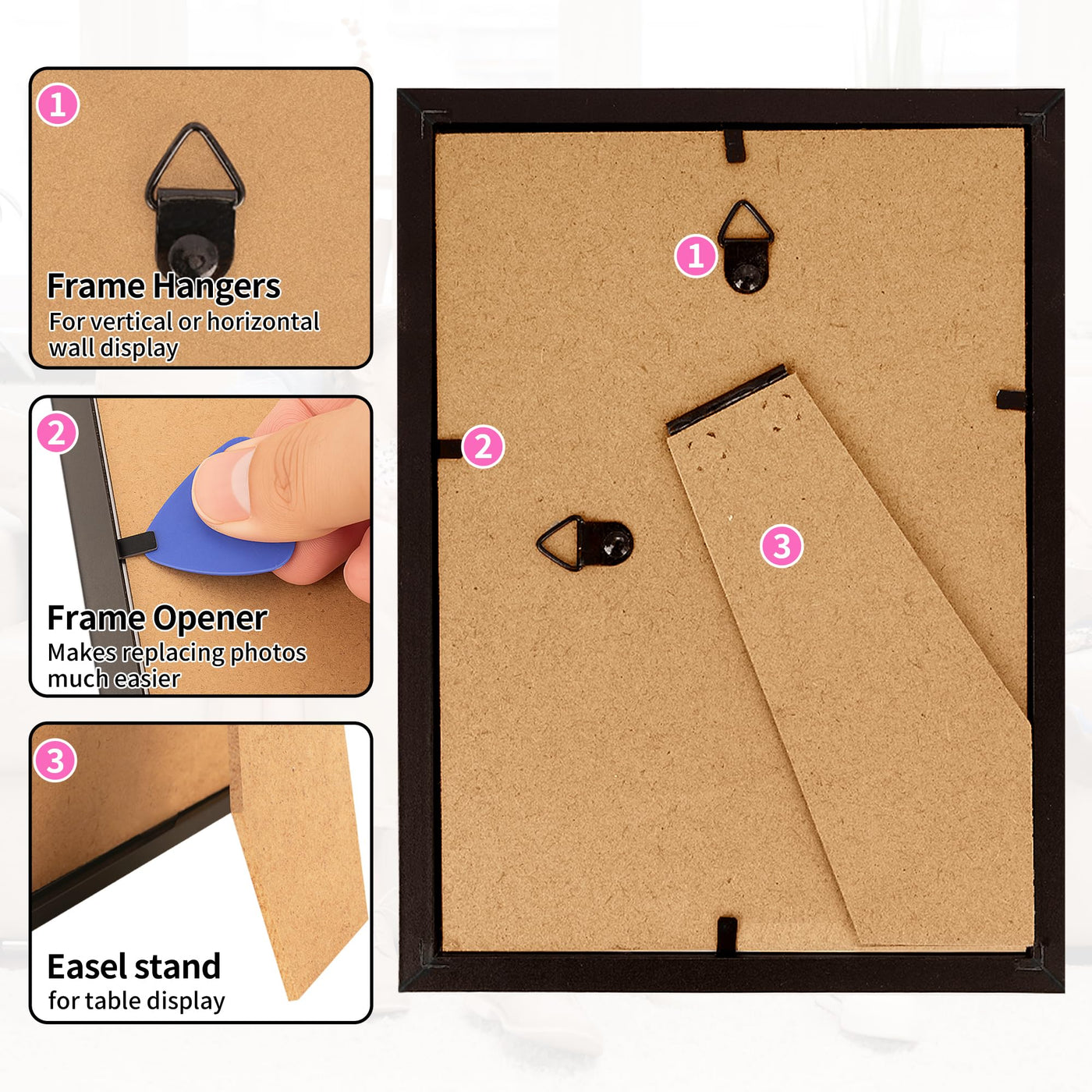 HOMERHYME 4x6 Picture Frames Set of 8, 4 by 6 Black Photo Frames for Gallery Wall Mounting or Table Display, Collage Frames with