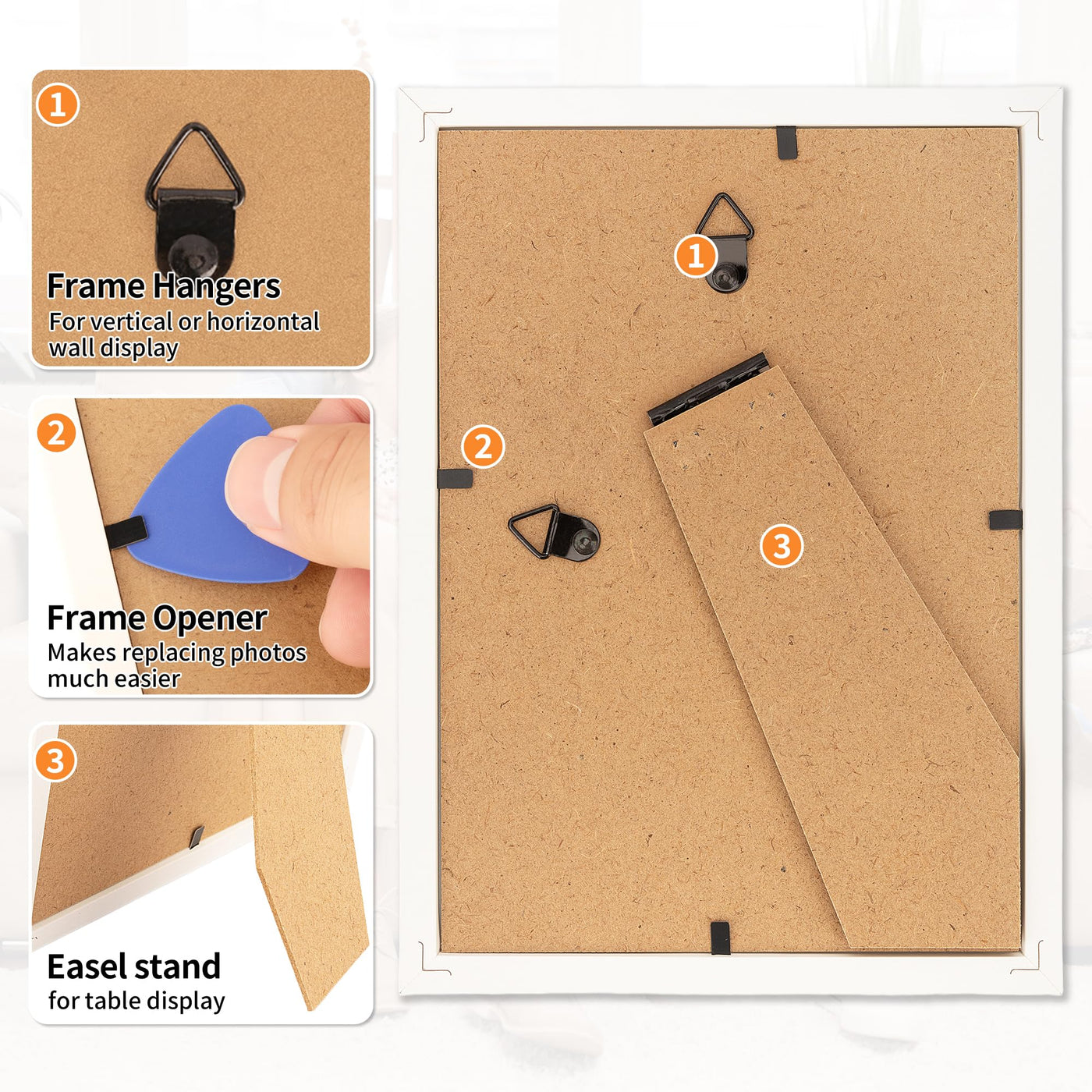 HOMERHYME 4x6 Picture Frames Set of 8, White Photo Frames for Gallery Wall Mounting or Table Display, Collage Frames with Clear