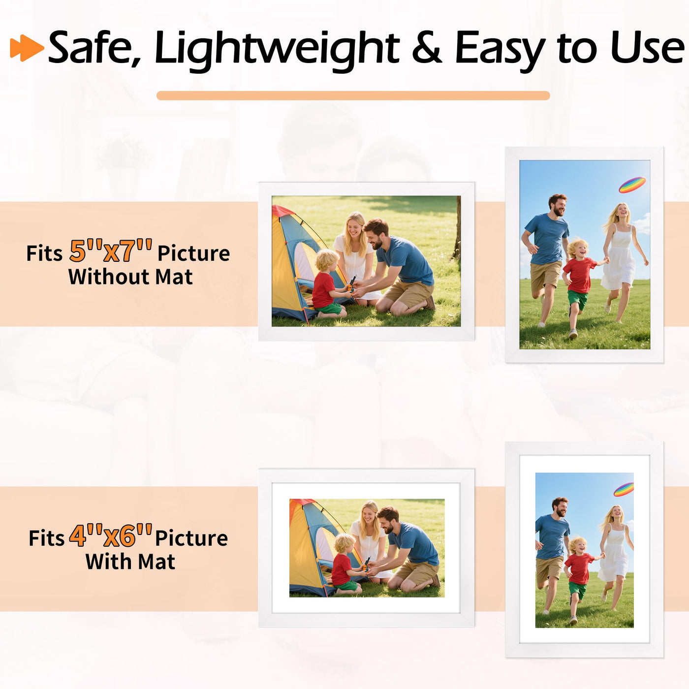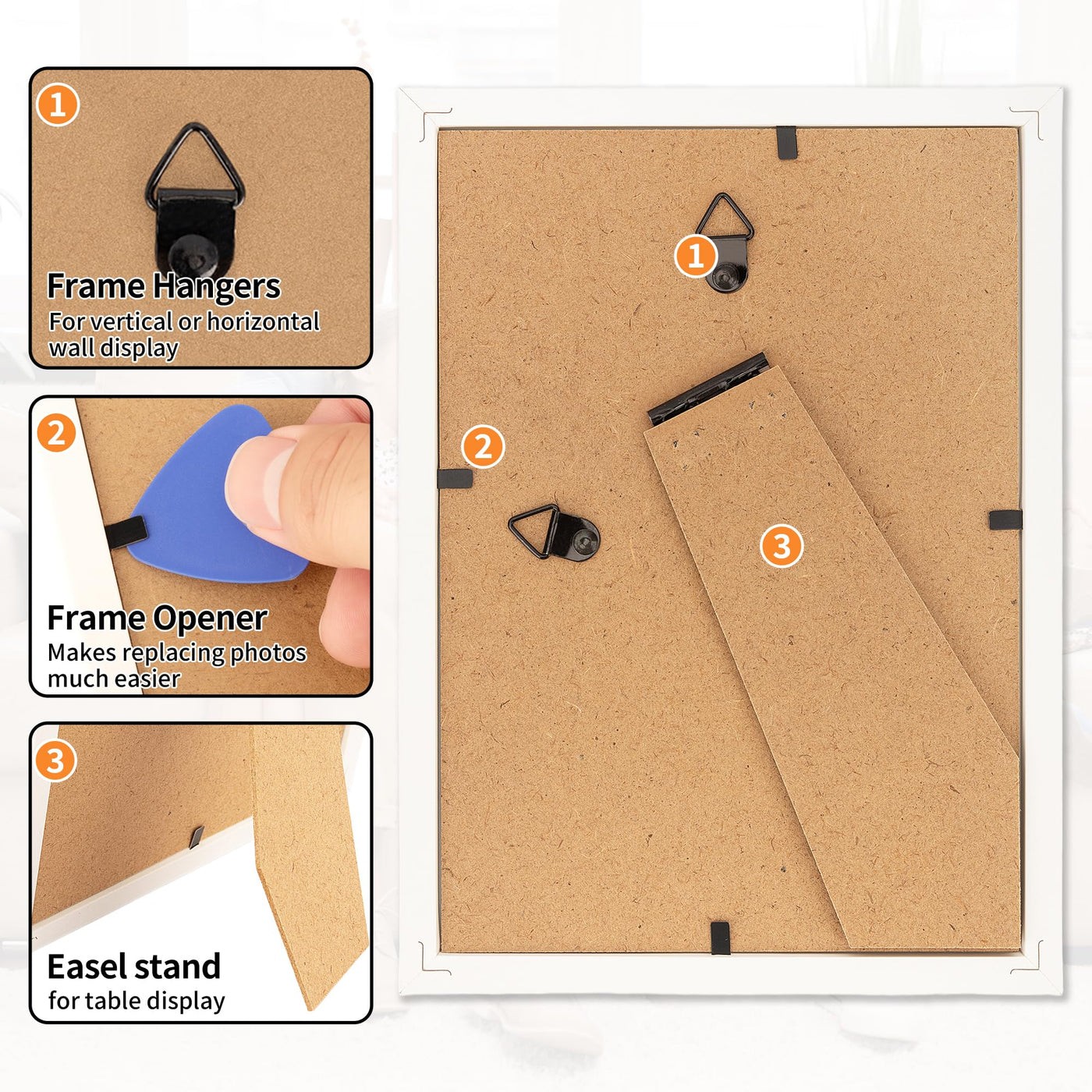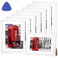 HOMERHYME 5x7 Picture Frame Set of 8, White Photo Frames for Gallery Wall Mounting or Table Display, Display Pictures 4x6 with M