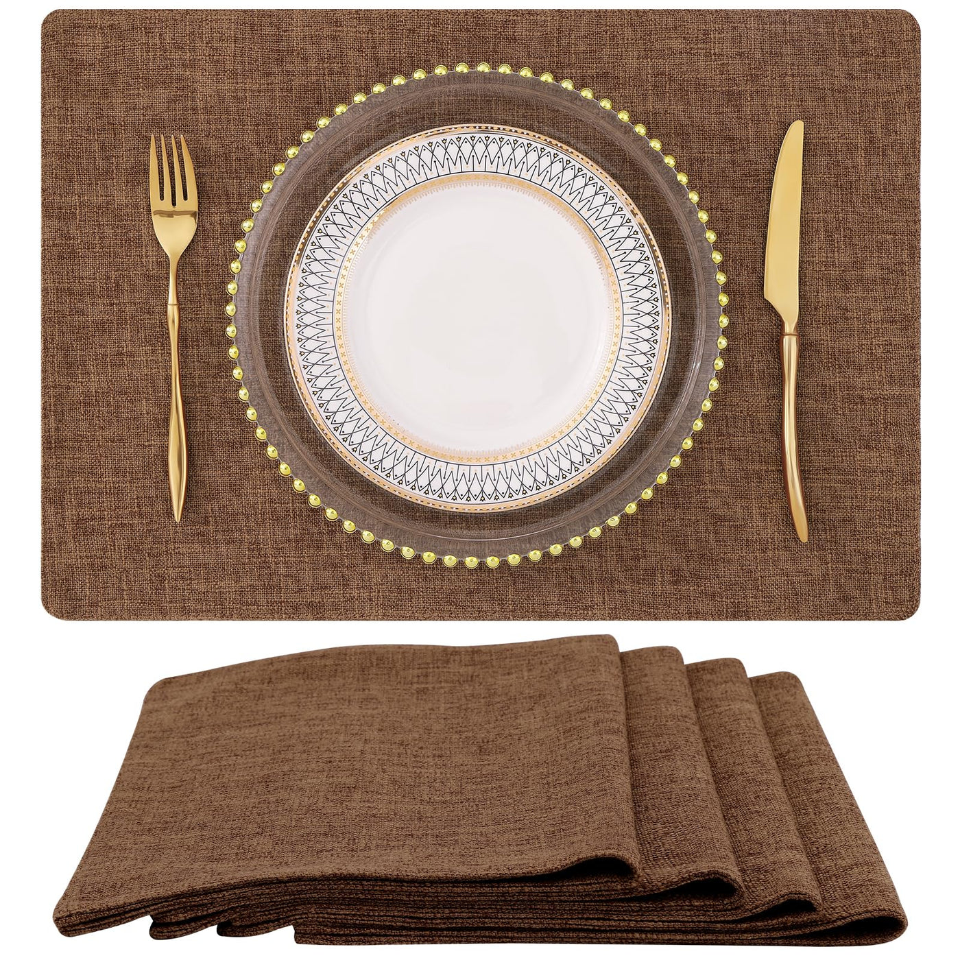 Homing Brown Cloth Placemats Set Of 4 - Cotton Linen Blend Washable Farmhouse Dining Table Mats For Indoors & Outdoors, Easy To