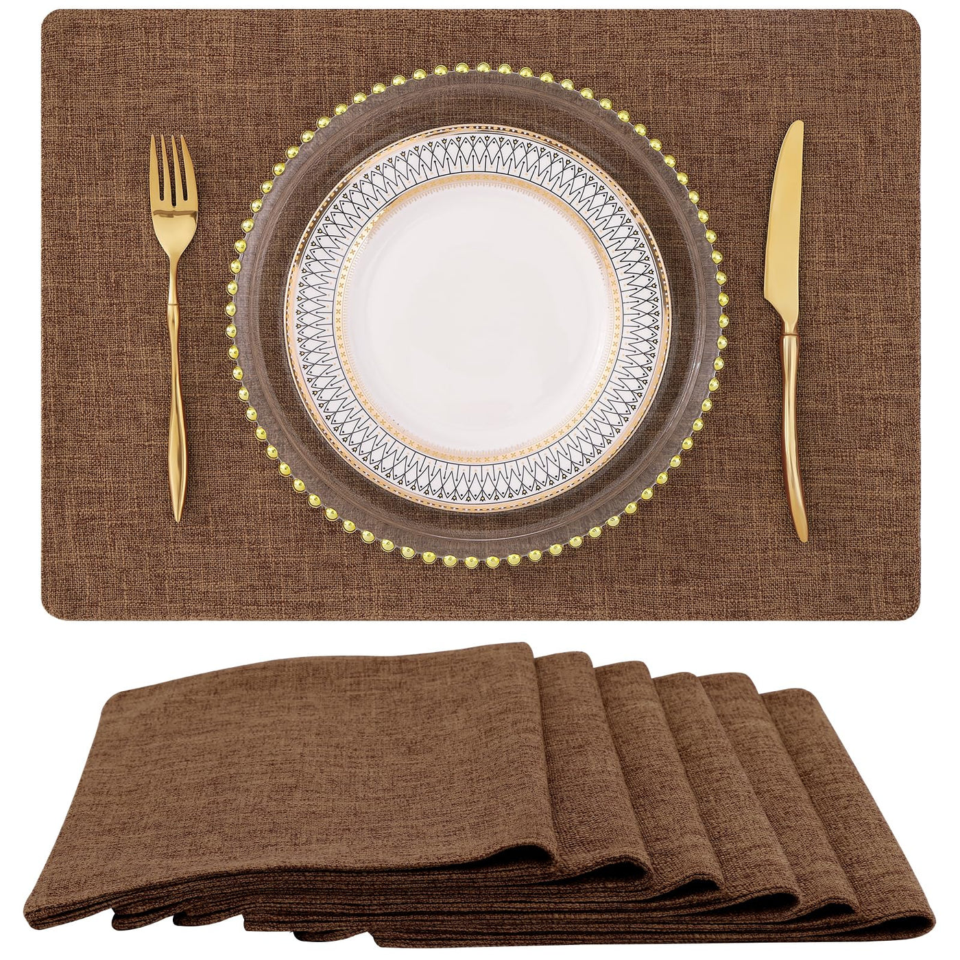Homing Brown Cloth Placemats Set Of 6 - Cotton Linen Blend Washable Farmhouse Dining Table Mats For Indoors & Outdoors, Easy To